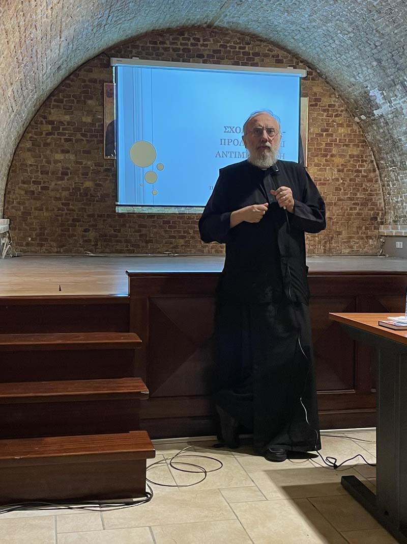 Ομιλητής στην ημερίδα ήταν ο π. Βασίλειος Θερμός, καθηγητής στην Ανωτάτη Εκκλησιαστική Ακαδημία Αθηνών, ψυχίατρος παιδιών και εφήβων, συγγραφέας και άνθρωπος που αγωνίζεται ιδιαιτέρως, ώστε οι επιστήμες ψυχικής υγείας να έρθουν σε διάλογο με την Θεολογία και τις άλλες ανθρωπιστικές επιστήμες, με την έκδοση εδώ και 11 χρόνια του εξαιρετικού επιστημονικού περιοδικού “ΨΥΧΗΣ ΔΡΟΜΟΙ”.