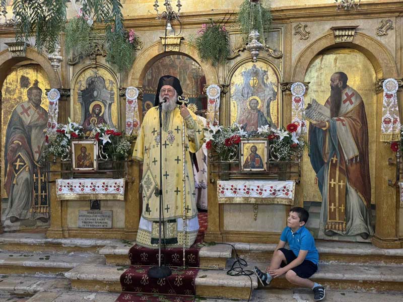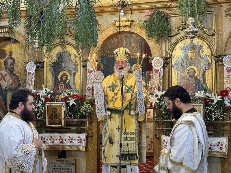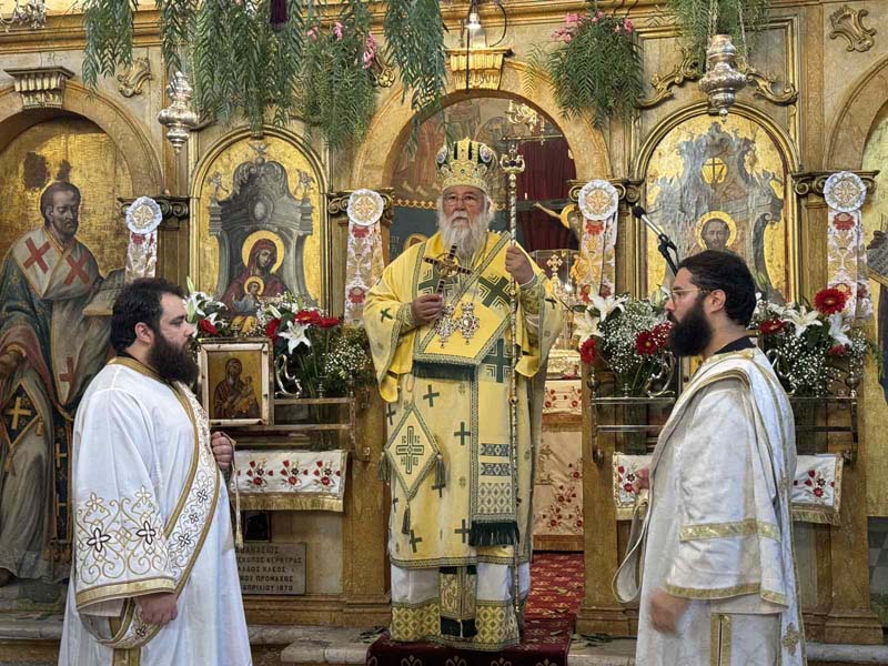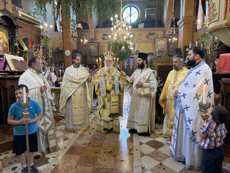 Στο κήρυγμά του ο Σεβασμιώτατος, αναφέρθηκε για το κυριαρχούν πρόσωπο της μεγάλης εορτής της Πεντηκοστής, που είναι το Πανάγιον Πνεύμα, και για το περιεχόμενο της μεγάλης εορτής, που είναι η προσκύνησις της Αγίας Τριάδος, της μιας θεότητος, της μιας ουσίας και της μιας φύσεως, εκφραζομένης εν τρισίν προσώποις.