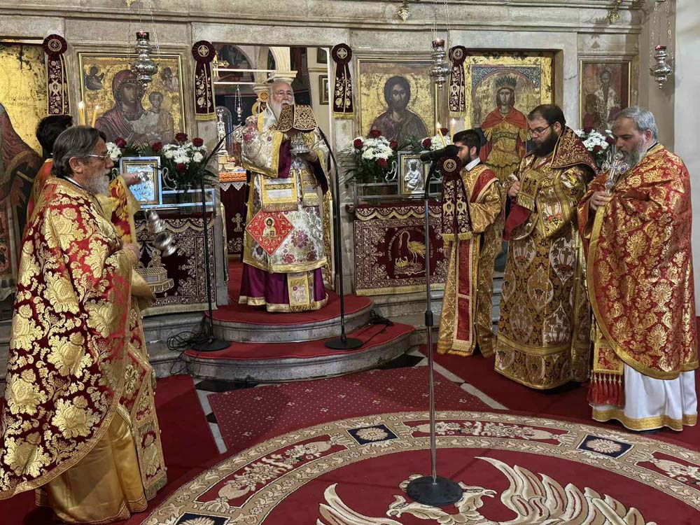 Κατά την Θεία Λειτουργία ο κ. Νεκτάριος, μιλώντας προς τους πιστούς, υπενθύμισε τόσο τον λόγο του Κυρίου ότι «πύλαι Άδου ου κατισχύσουσιν της Εκκλησίας», όσο και τον λόγο του ιερού Χρυσοστόμου ότι «ουδέν της Εκκλησίας του Χριστού δυνατώτερον. Ευκολώτερον τον ήλιον σβησθήναι ή την Εκκλησίαν εκθεμελιώσαι» και τόνισε ότι ζούμε την Εκκλησία ως ουρανό, ως βασιλεία του Θεού, που συνεχίζεται στην αιωνιότητα, στον μέλλοντα αιώνα, χωρίς την κακεντρέχεια, την διαβολή, την μεταπτωτική κατάσταση που τυραννούνε σ’ αυτήν εδώ τη ζωή τον οποιονδήποτε άνθρωπο με την αμαρτία, την πτώση, τη φθορά, τον θάνατο. Εκεί θα υπάρχει η χαρά της βασιλείας και της θέας του προσώπου του Θεού.