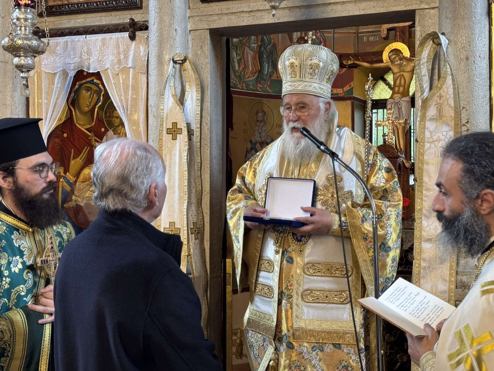 Με την ευχή του καλού αγώνα και της καλής Σαρακοστής ο κ. Νεκτάριος έκλεισε τον λόγο του και στη συνέχεια επέδωσε στον παλαίμαχο ιεροψάλτη Κωνσταντίνο Γιωτάκη, συνταξιούχο δάσκαλο, τιμητική πλακέτα.