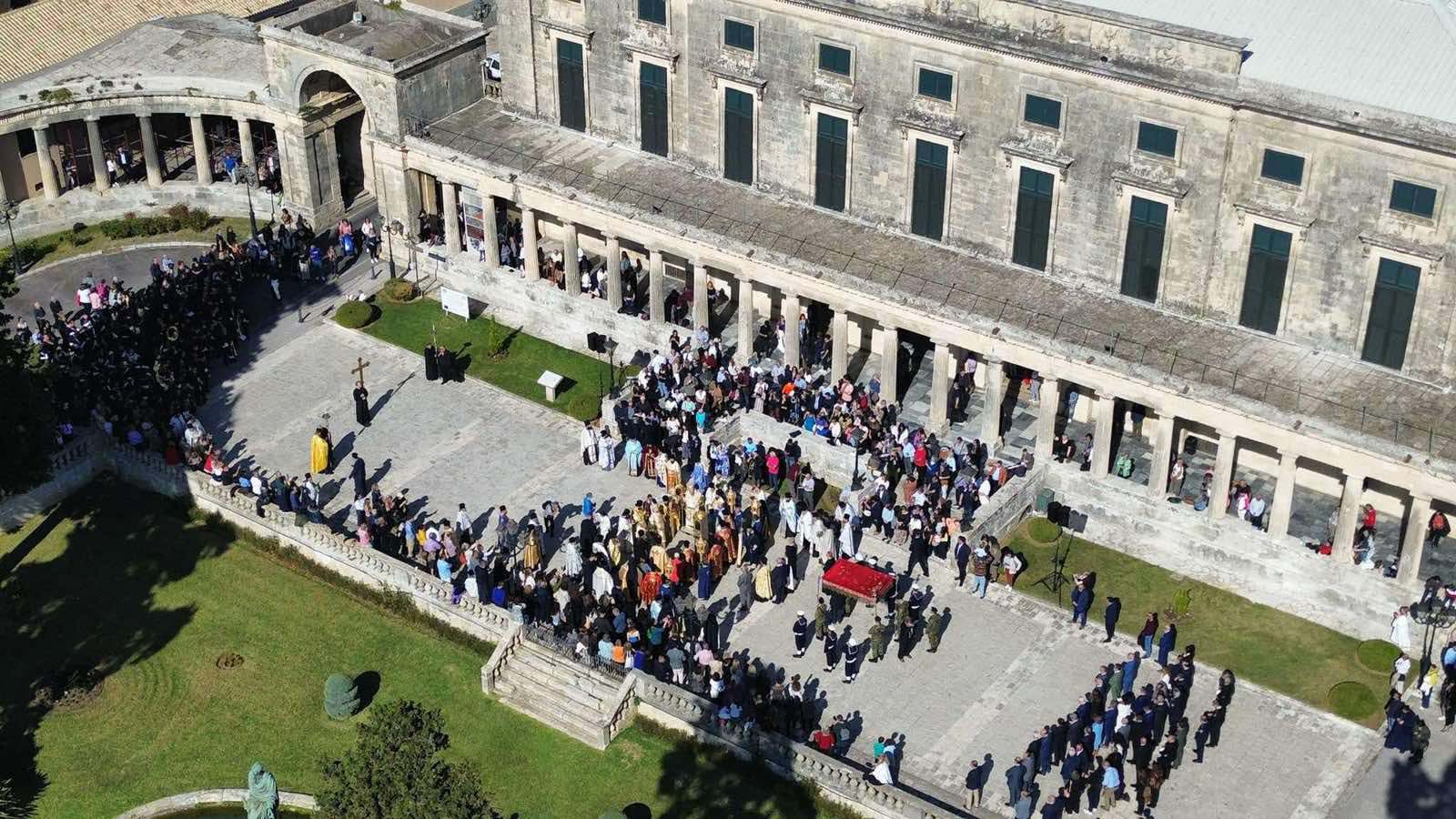 Στη συνέχεια, έγινε η καθιερωμένη λιτανεία, με τον μοναδικό τρόπο που η Κέρκυρα γνωρίζει να τιμά τον Άγιο, στην οποία πλήθος ανθρώπων συμμετείχε προσευχητικά. Μπροστά στο Παλαιό Φρούριο έγινε η καθιερωμένη δέηση , ενώ στο Παλάτι ο κ. Νεκτάριος, κατά το έθος, προσφώνησε τους Αρχιερείς, τους άρχοντες και τον λαό του Θεού, επισημαίνοντας τη σημασία της δύναμης της πίστης, η οποία αυτή είναι το μέγα θαύμα. Πολλοί επιχείρησαν να καταργήσουν την πίστη, υποβάλλοντας σε διωγμούς και μαρτύρια τους χριστιανούς, αλλά απέτυχαν, όχι μόνο στους πρώτους χριστιανικούς αιώνες, αλλά και στους καιρούς μας. Το ίδιο συμβαίνει και στην εποχή μας, στην οποία ο δυτικός πολιτισμός αμφισβητεί τις αξίες και τις αλήθειες του Ευαγγελίου, με νόμους και αποφάσεις, αλλά η πίστη δεν θα νικηθεί. Ο Άγιος Σπυρίδων είναι αυτός που μαρτυρεί τον τρόπο με τον οποίο ξεδιψούμε για την αλήθεια, για την ελευθερία, για την αγάπη, που είναι μέσα από τη σχέση μας με τον Χριστό. Ο Άγιος Σπυρίδων διατρανώνει την πίστη στον αληθινό Θεό μέσα από την ταπεινή ζωή του και ενισχύει τον καθέναν που ταλαιπωρείται από τις ανακατατάξεις και στην πατρίδα μας. Ας γνωρίζουν όσοι επιχειρούν την κατεδάφιση της πίστεως, ότι προς κέντρα λακτίζουν. Ο Άγιος παραμένει προστάτης της πίστεως. Όπως το έπραξε στην Πρώτη Οικουμενική Σύνοδο, συνεχίζει με την ζώσα μαρτυρία του αφθάρτου σώματός του να το πράττει και στους καιρούς μας.