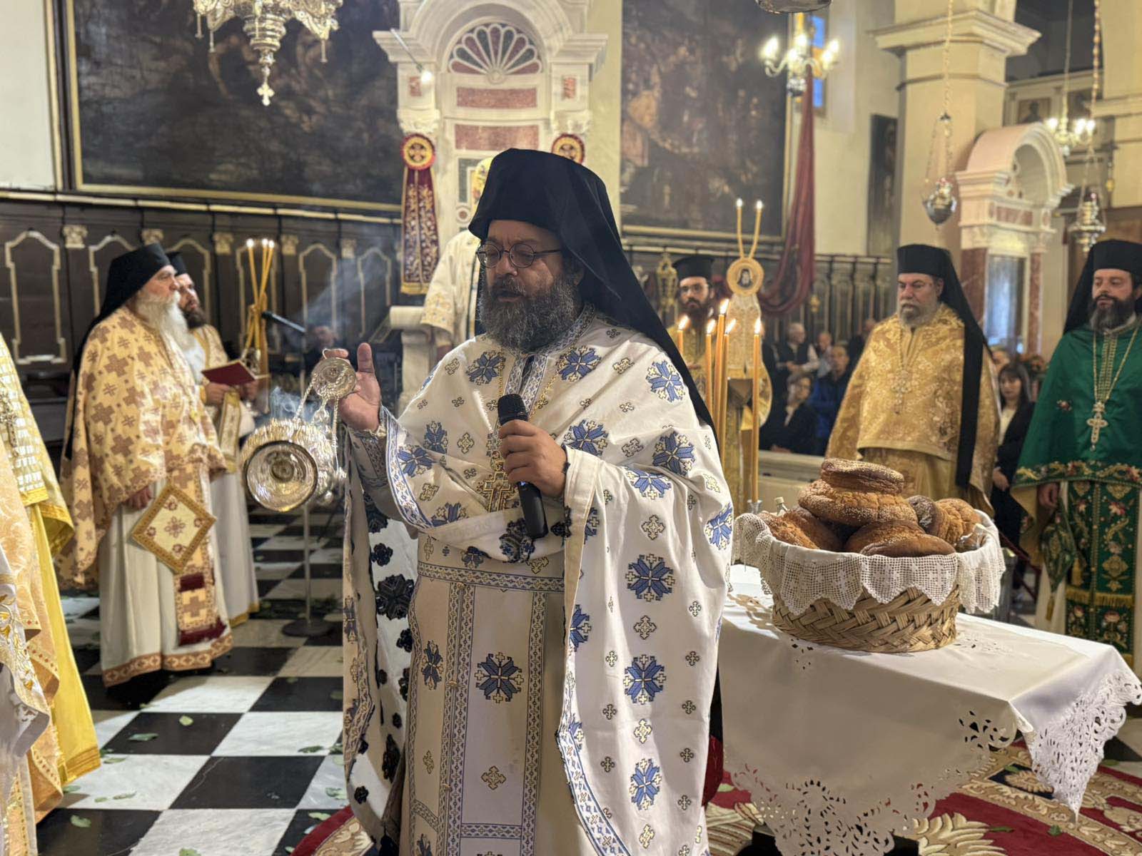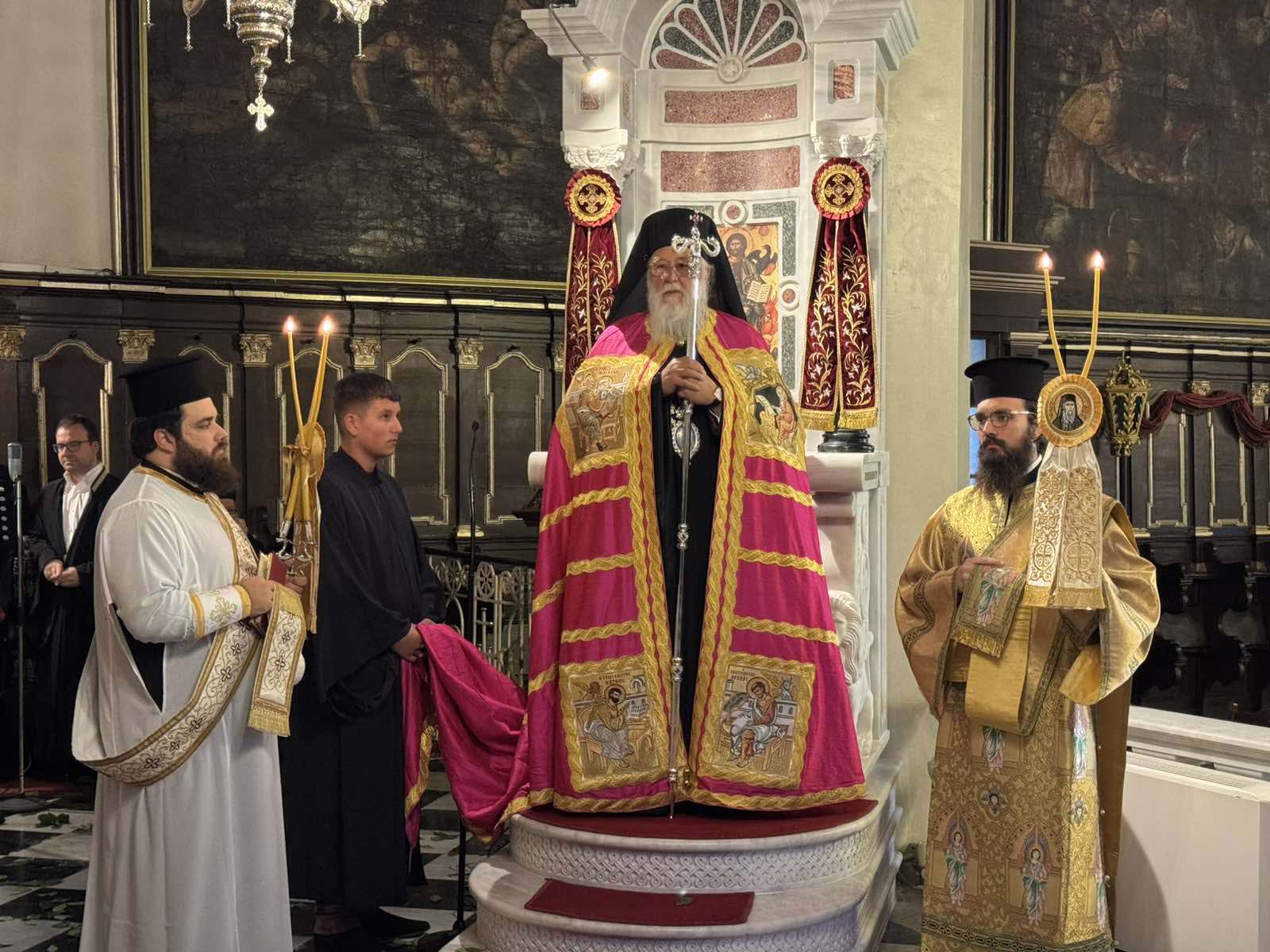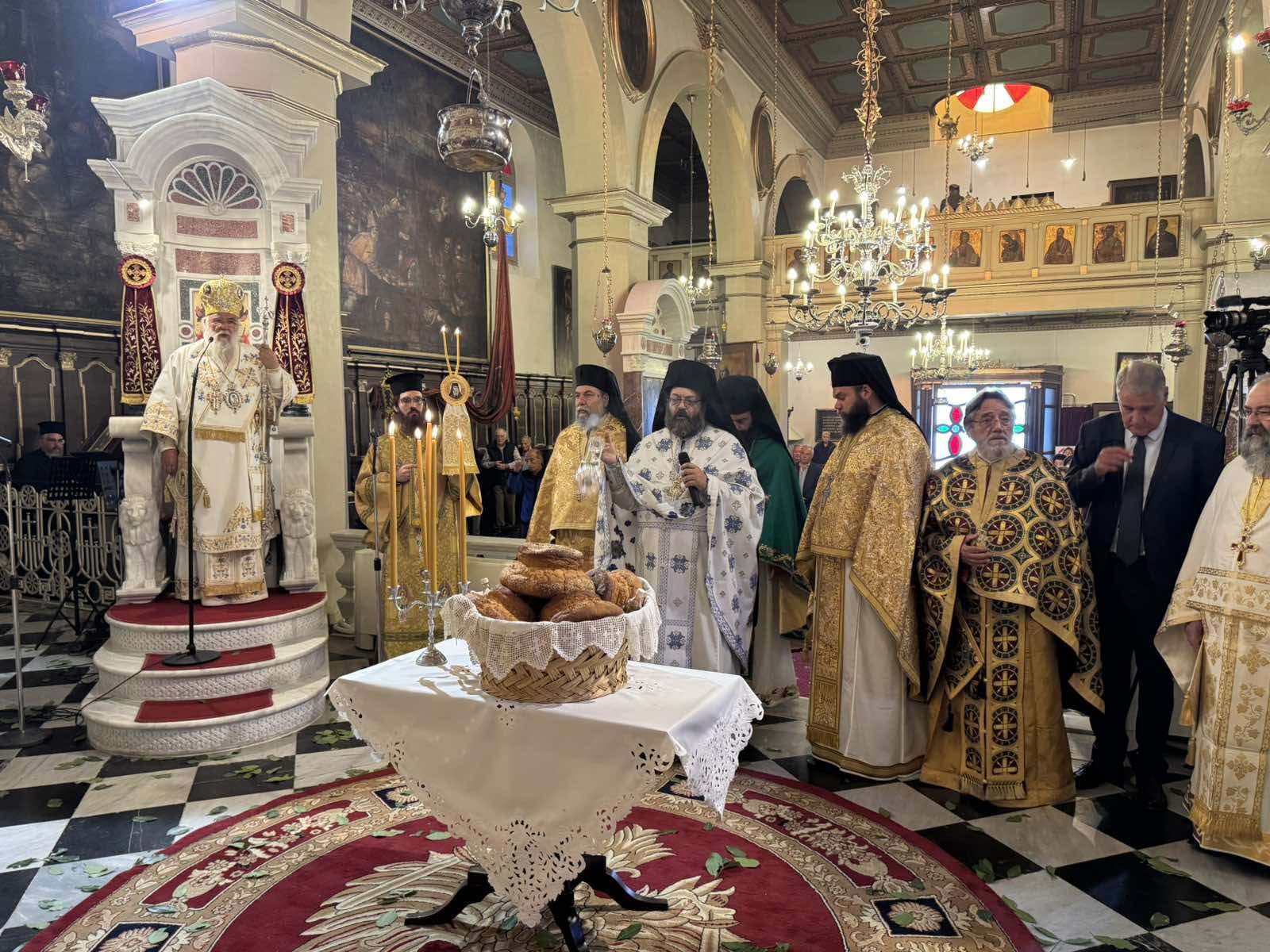 Με το πέρας της θείας λειτουργίας ο Σεβασμιώτατος δέχτηκε ευχές από τον κλήρο, τους άρχοντες και τον λαό.