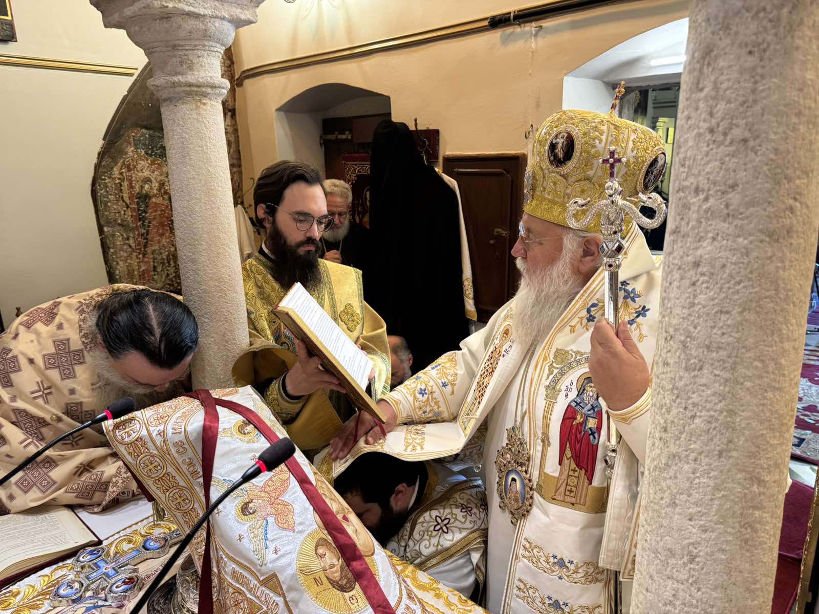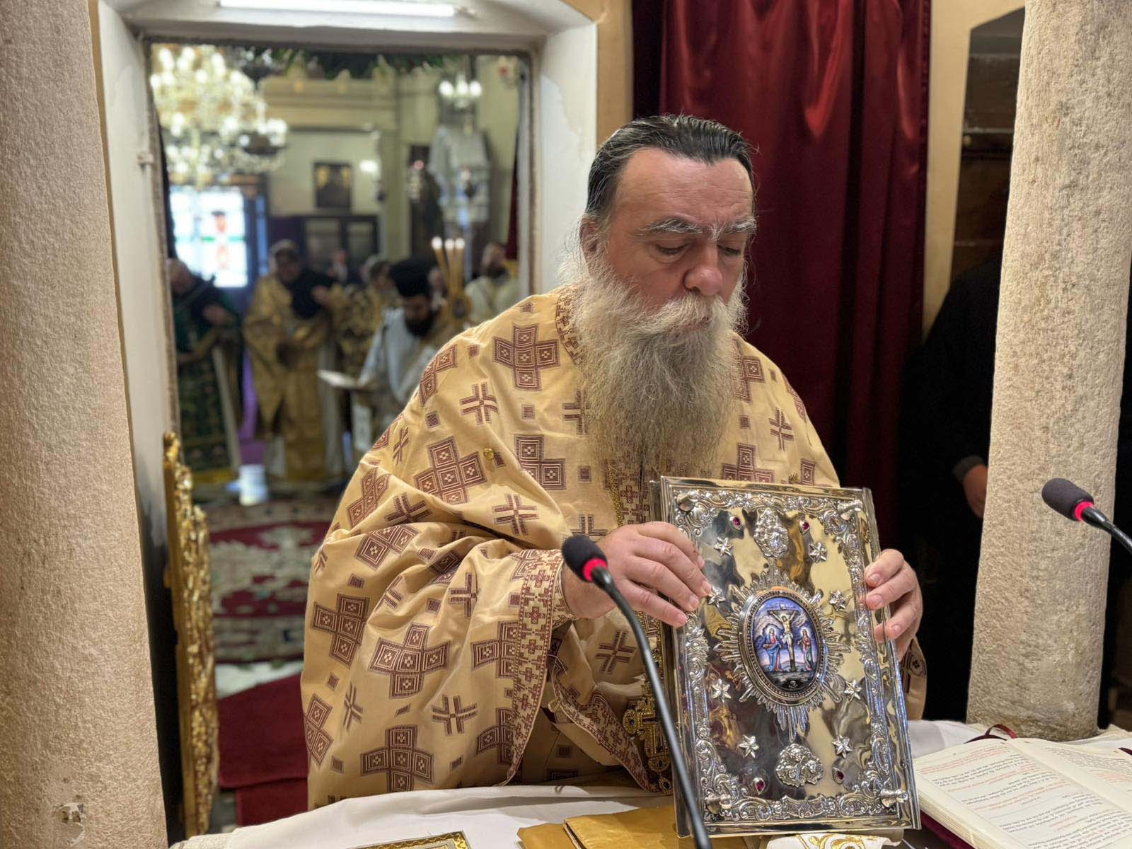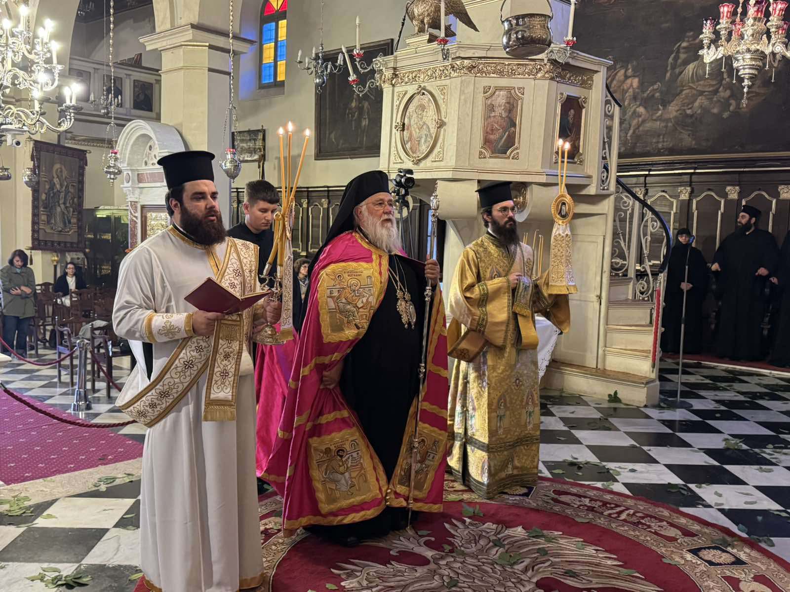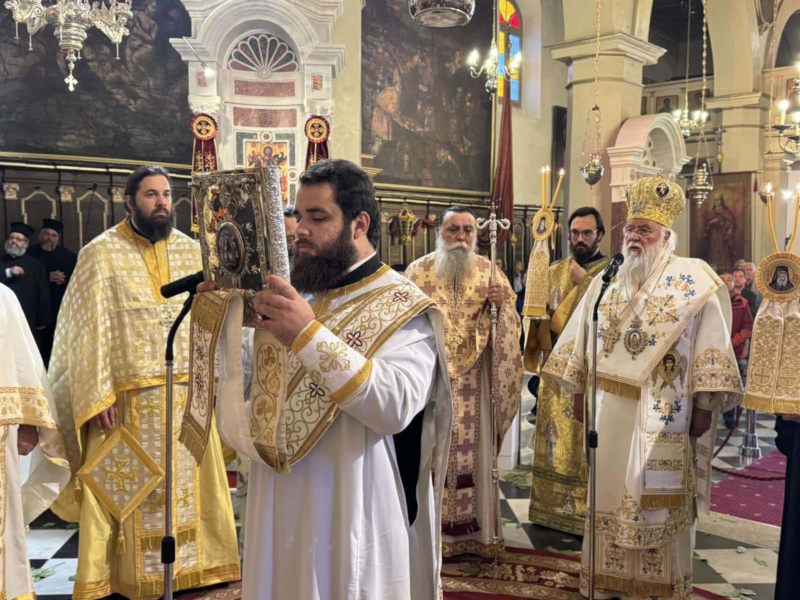 Με το πέρας της θείας λειτουργίας ο Σεβασμιώτατος δέχτηκε ευχές από τον κλήρο, τους άρχοντες και τον λαό.