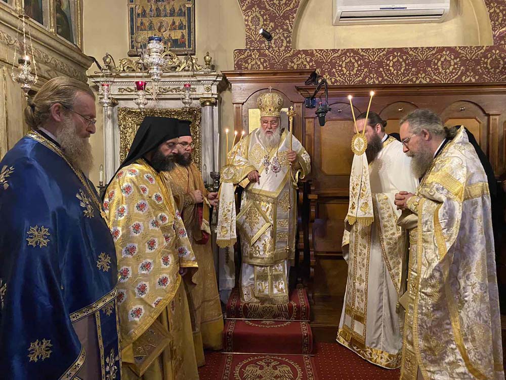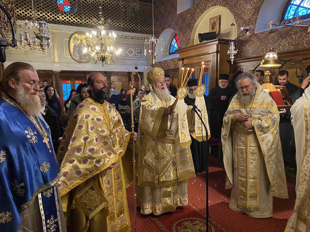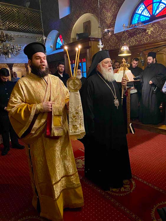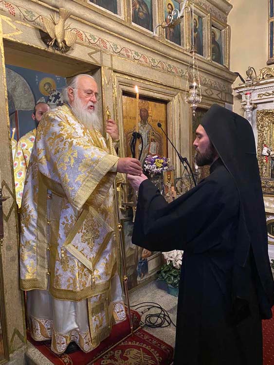 Στην Ιερά Μονή Αγίων Θεοδώρου του Τήρωνος και Αγίου Γεωργίου στην περιοχή Στρατιά της πόλης της Κέρκυρας λειτούργησε το πρωί του Σαββάτου 20 Ιανουαρίου 2024, επί τη μνήμη του Οσίου Ευθυμίου του Μεγάλου.