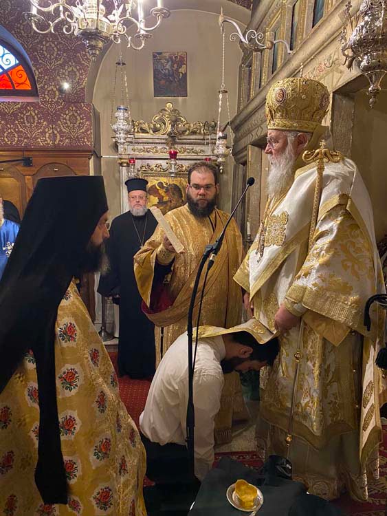Κατά τη διάρκεια της θείας λειτουργίας ο Σεβασμιώτατος έκειρε εις μοναχόν τον κ. Θεόδωρο Πανδή, πτυχιούχο του τμήματος Μουσικών Σπουδών του Ιονίου Πανεπιστημίου, έλκοντα την καταγωγή του από την Λευκίμμη. Ο νέος μοναχός έλαβε το όνομα Ευσέβιος και εντάχθηκε στην αδελφότητα της Ιεράς Μονής με καθηγούμενο τον Αρχιμ. Χριστόδουλο Τριαντάφυλλο.
