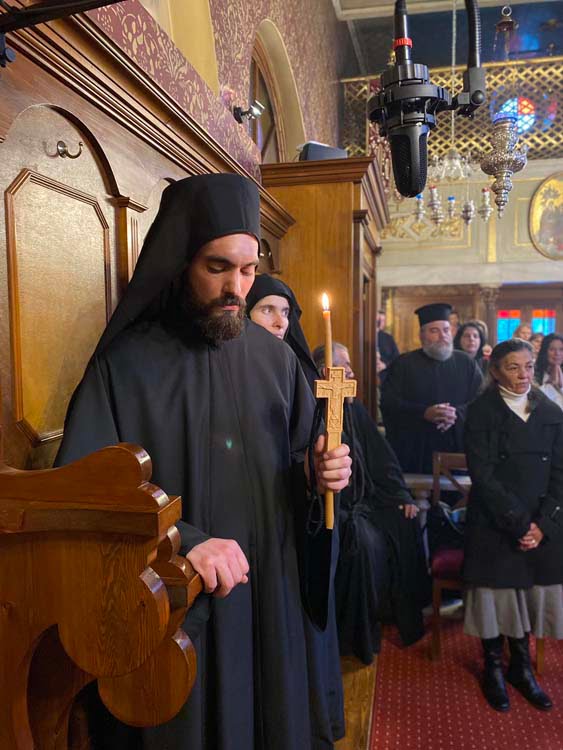 Στην θεία λειτουργία συμμετείχαν ο καθηγούμενος της Ιεράς Μονής Αρχιμ. Χριστόδουλος Τριαντάφυλλος, ο πνευματικός πατέρας του νέου μοναχού Πρωτ. Θεμιστοκλής Μουρτζανός, Γενικός Αρχιερατικός Επίτροπος της Ιεράς Μητροπόλεως, ο ιερέας του χωριού του νέου μοναχού Πρωτ. Γεώργιος Στασινούλας και ο π. Ζαχαρίας Κόβαλτσουκ. Συμπροσευχήθηκαν ευάριθμοι κληρικοί, ο ιεροκήρυκας της Λευκίμμης π. Αρχιμ. Σεραφείμ Λινοσπόρης και ο Αρχιερατικός Βορείου Κερκύρας Πρωτ. Σπυρίδων Προβατάς, οι μοναχές της Ιεράς Μονής Αγ. Παρασκευής Μακράδων και αρκετοί πιστοί.