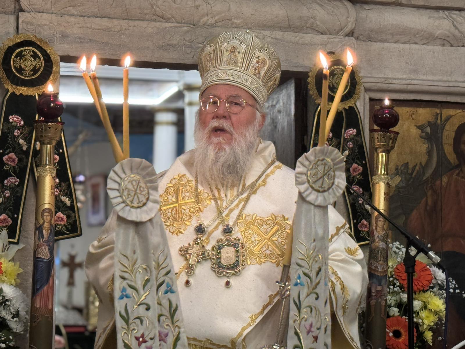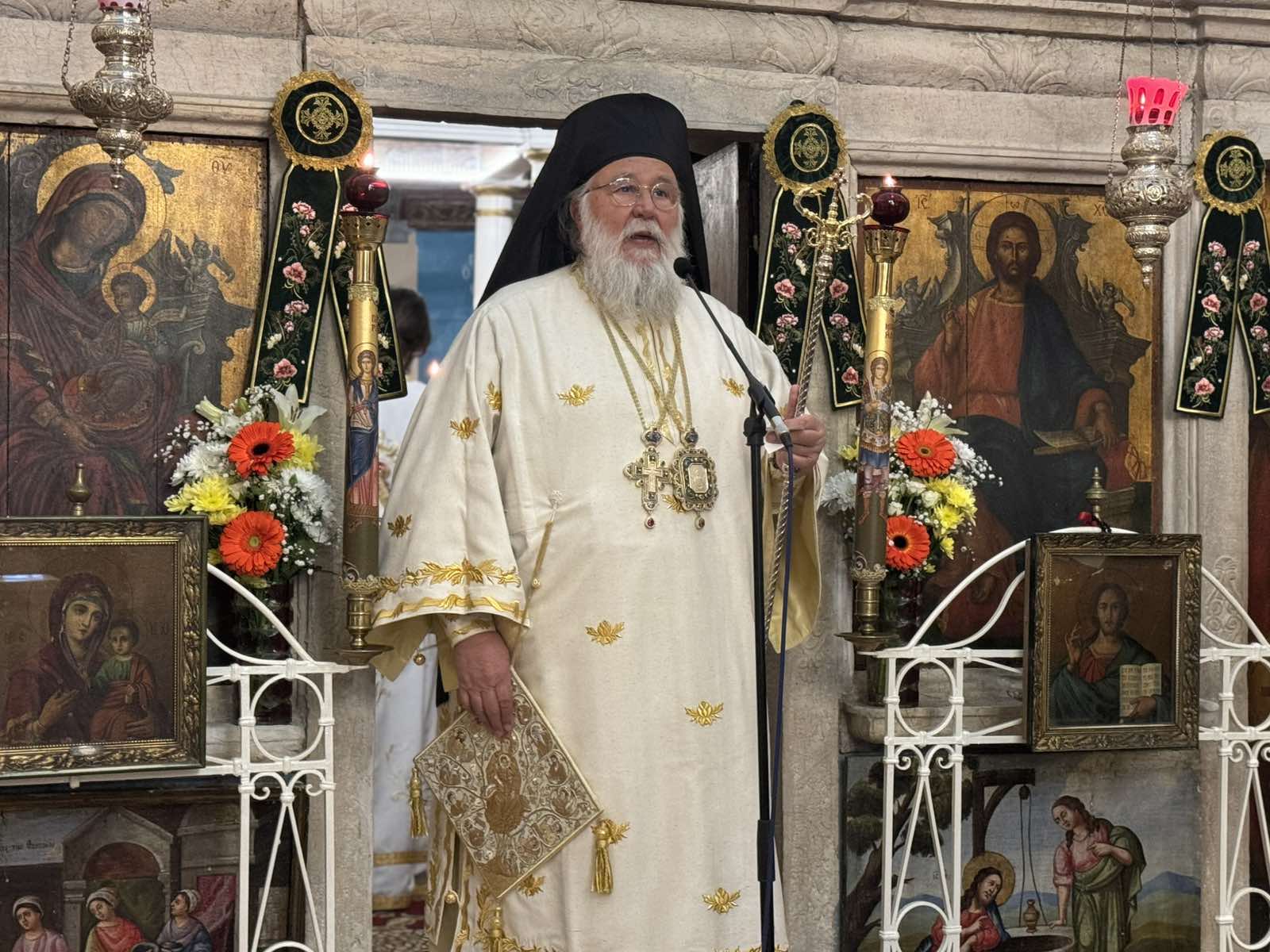 Ο Σεβασμιώτατος απευθυνόμενος στο εκκλησίασμα, το οποίο κατέκλυσε τον Ιερό Ναό, έλαβε αφορμή από τη σημερινή ευαγγελική περικοπή της Δευτέρας Παρουσίας. Κατά την ομιλία του είπε ότι η εν λόγω περικοπή ελέχθηκε από τον Κύριό μας, όχι για να προκαλέσει φόβο στους ανθρώπους, αλλά επεδίωκε να ξεδιπλώσει την πραγματικότητα από την παρούσα ζωή σε αυτή της αιωνιότητος. Ιδιαίτερα, κατά την ημέρα εκείνη όπου θα γίνει η συντέλεια της παρούσης δημιουργίας ώστε να εκλείψει πλέον η ανομία και η ανταρσία των ανθρώπων κατά του Θεού. Αυτήν τη στάση του ανθρώπου, την προκάλεσε η προσχώρησή του στην επιρροή του διαβόλου. Πλέον, στην καινή δημιουργία η οποία είναι ητοιμασμένη για την οντολογική ζωή της ανθρωπότητος, ο Κύριός μας ομιλεί περί της επιλογής των ανθρώπων οι οποίοι θα γίνουν μέτοχοι της επουρανίου βασιλείας του Θεού.