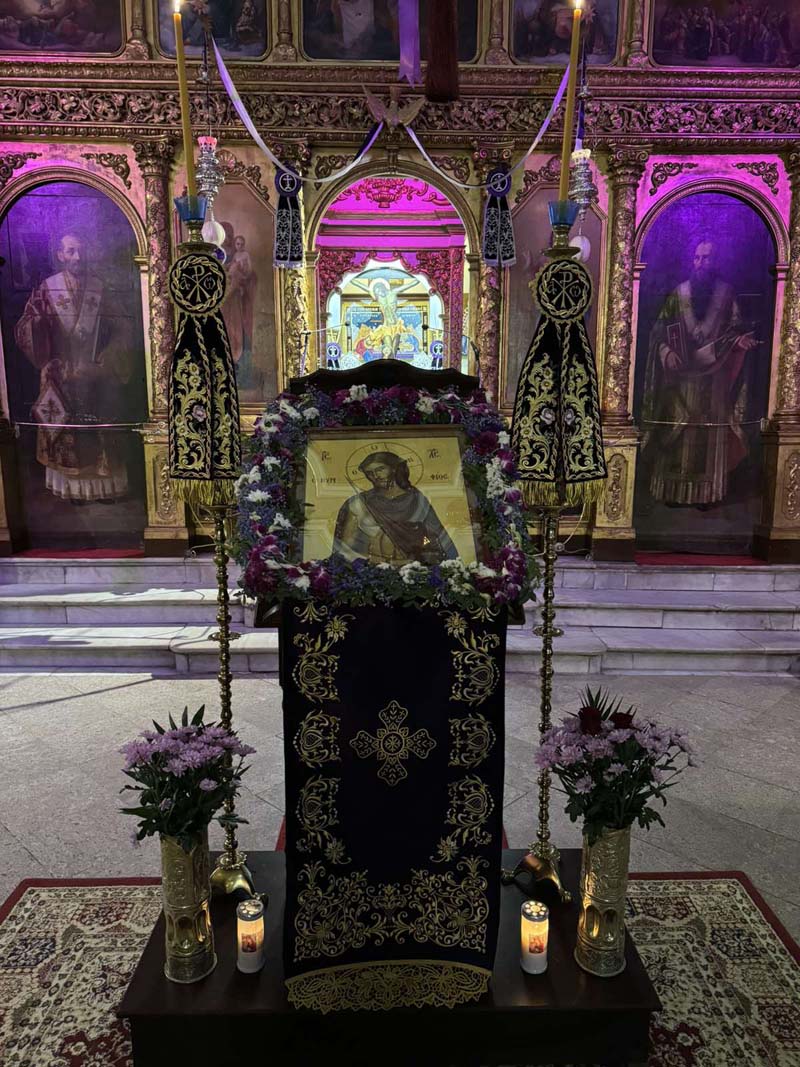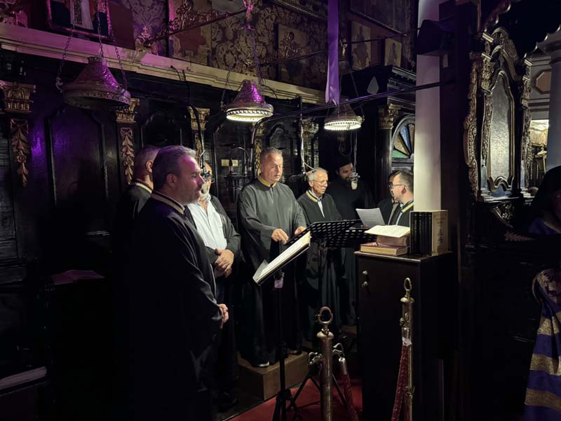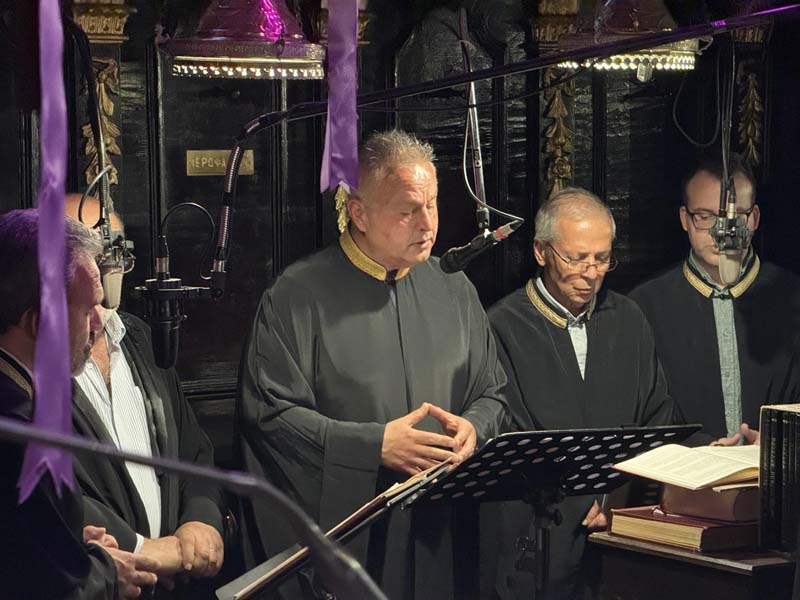 Στον ως άνω Ιερό Ναό υπάρχει βυζαντινός χορός, υπό του χοράρχη κ. Νικολάου Μακρόπουλου, καθηγητή Βυζαντινής Μουσικής της Ιεράς Μητροπόλεως Κερκύρας, ο οποίος και απέδωσε κατανυκτικά τους ύμνους, και ιδιαίτερα το γνωστό τροπάριο της Μοναχής Κασσιανής, το οποίο αναφέρεται στην γυναίκα εκείνη που άλειψε με μύρο τους πόδας του Ιησού με της τρίχες της κεφαλής της.