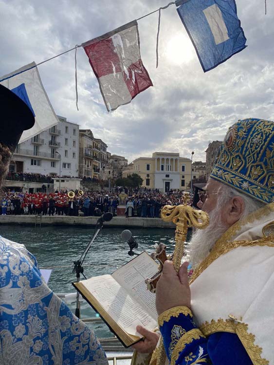 Στον Μητροπολιτικό Ναό Υπεραγίας Θεοτόκου Σπηλαιωτίσσης λειτούργησε το πρωί του Σαββάτου 6 Ιανουαρίου 2024 ο Σεβασμιώτατος Μητροπολίτης Κερκύρας, Παξών και Διαποντίων Νήσων κ. Νεκτάριος, για την ημέρα των Θεοφανίων, ενώ τέλεσε και τον αγιασμό των υδάτων εντός του ναού. Στην συνέχεια, έγινε στο παλιό λιμάνι της Κέρκυρας η κατάδυση του τιμίου Σταυρού και ο αγιασμός των υδάτων, με την παρουσία των αρχών του νησιού, πάνω σε πλοιάριο του Λιμενικού. Πολλοί κολυμβητές έπεσαν στη θάλασσα για να πιάσουν τον σταυρό, στους οποίους ο κ. Νεκτάριος προσέφερε ως ευλογία ένα μικρό σταυρουδάκι στον καθέναν, ενώ έναν μικρό χρυσό σταυρό έδωσε ως δώρο στον Παρασκευά, ένα νέο παιδί από την Αθήνα που έπιασε τον σταυρό.