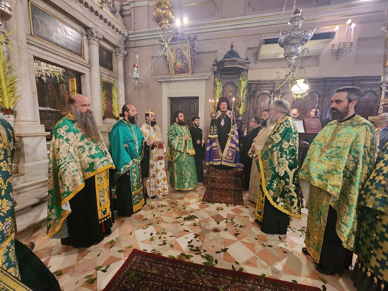 Απευθυνόμενος στους πιστούς ο Επίσκοπος Κοτυαίου, βοηθός του Μητροπολίτη Ιταλίας κ. Πολυκάρπου, τόνισε ότι την Κυριακή των Βαΐων χρειάζεται να ξαναδούμε ποιος είναι ο Χριστός της Εκκλησίας. Ο λαός πίστεψε ότι ο Χριστός ήταν ο βασιλεύς του Ισραήλ. Τον υποδέχεται θριαμβευτικά, αλλά τέσσερις ημέρες αργότερα θα Τον οδηγήσουν στον Σταυρό. Οι Ιουδαίοι είχαν δική τους αντίληψη για τον Μεσσία. Θεωρούσαν ότι θα ήταν απελευθερωτής του λαού από τους Ρωμαίους, ενώ Εκείνος ήρθε για να ελευθερώσει τον κόσμο από την αμαρτία. Τι εικόνα έχουμε εμείς για τον Χριστό; Αυτή την ερώτηση τη βάζουμε στον εαυτό μας, αλλά είναι λανθασμένη ερώτηση. Η Εκκλησία δεν είναι ένας σύλλογος που αποφασίζει δημοκρατικά για ένα θέμα. Ο ίδιος ο Χριστός μας δίνει την απάντηση για το Ποιος είναι και αυτό διασώζει η Εκκλησία μέσα από το Σύμβολο της Πίστεως. Η Εκκλησία καλείται να διαφυλάξει και να ορθοτομεί την πίστη την οποία παρέλαβε από τον Χριστό διά των Αποστόλων. Αλλιώς έχουμε πρόβλημα στη σωτηρία των ανθρώπων. Η Εκκλησία δεν είναι φιλανθρωπικός οργανισμός ούτε χώρος καλών ανθρώπων, αλλά εργαστήριο λύτρωσης και σωτηρίας.