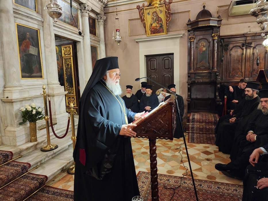 Στο τέλος της ομιλίας διάβασε την συγχωρητική ευχή προς τους ιερείς και τους πιστούς εν όψει της αγίας και μεγάλης Τεσσαρακοστής.