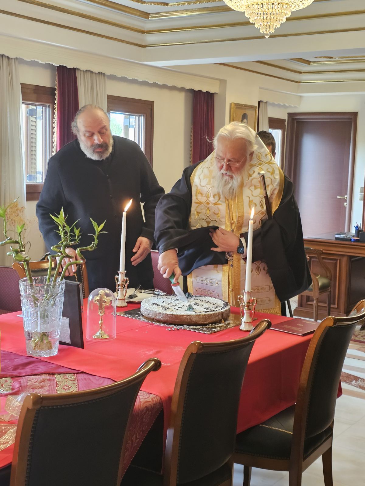 Στη συνέχεια, ο κ. Νεκτάριος ευλόγησε τη βασιλόπιτα των Γραφείων της Ιεράς Μητροπόλεως, ευχαριστώντας τους συνεργάτες της τοπικής Εκκλησίας τόσο στη διοίκηση όσο και στις δομές όπως το Επικοινωνιακό και Μορφωτικό Ίδρυμα, ο Βρεφονηπιακός Σταθμός και το ΚΔΑΠ, ο Ραδιοφωνικός Σταθμός και το Ίδρυμα Χρονίως Πασχόντων, για την συναντίληψη και συνοδοιπορία στο έργο της προσφοράς στον άνθρωπο και της αναζήτησης νοήματος αιωνιότητας μέσα από τη σχέση με τον Χριστό.
