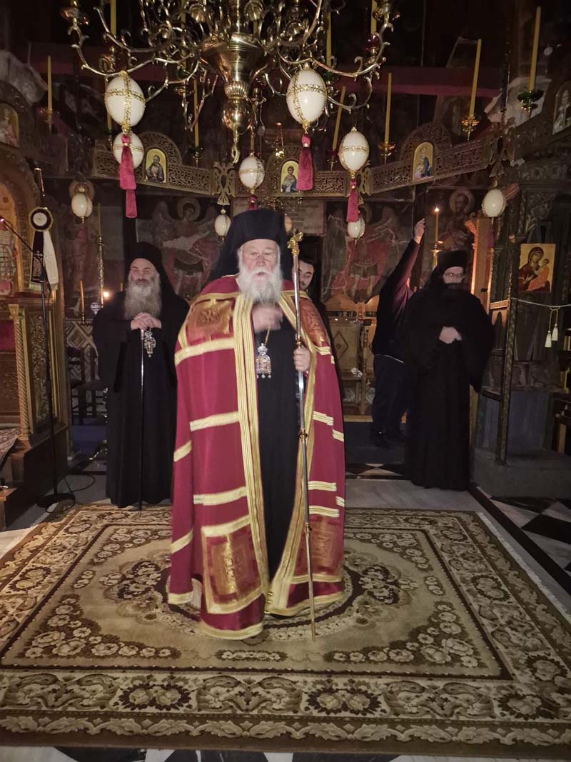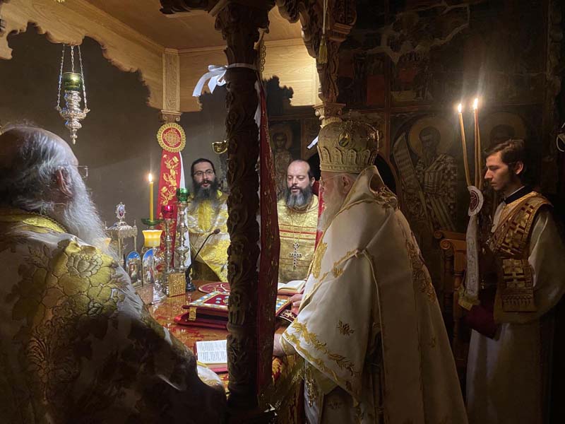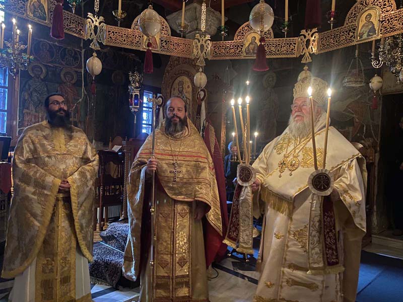 Ο Σεβασμιώτατος κατά την Θεία Λειτουργία, συλλειτούργησε με τον άγιο καθηγούμενο π. Νεκτάριο, τον πανοσιολογιώτατον αρχιμανδρίτην π. Χριστόδουλον Τριαντάφυλλον, ιεροκήρυκα του ιερού Προσκυνήματος Αγίου Σπυρίδωνος Κερκύρας και καθηγούμενο της Ιεράς Μονής Αγίων Θεοδώρων Στρατιάς, και τους αδελφούς της ιεράς μονής,ιερομόναχο π. Μάξιμο και τον ιεροδιάκονο π. Δανιήλ, και διάκονο του Σεβ. Μητροπολίτου Δημητριάδος κ. Ιγνατίου.