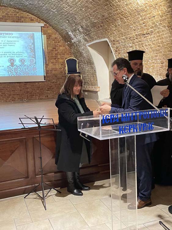 Προσφωνήσεις απηύθυναν ο Σεβασμιώτατος Αρχιεπίσκοπος των εν Κερκύρα Ρωμαιοκαθολικών κ. Γεώργιος, ο Αντιπρύτανης του Ιονίου Πανεπιστημίου κ. Στάθης Μακρής και ο Περιφερειακός Διευθυντής Εκπαίδευσης Ιονίων Νήσων κ. Πέτρος Αγγελόπουλος.