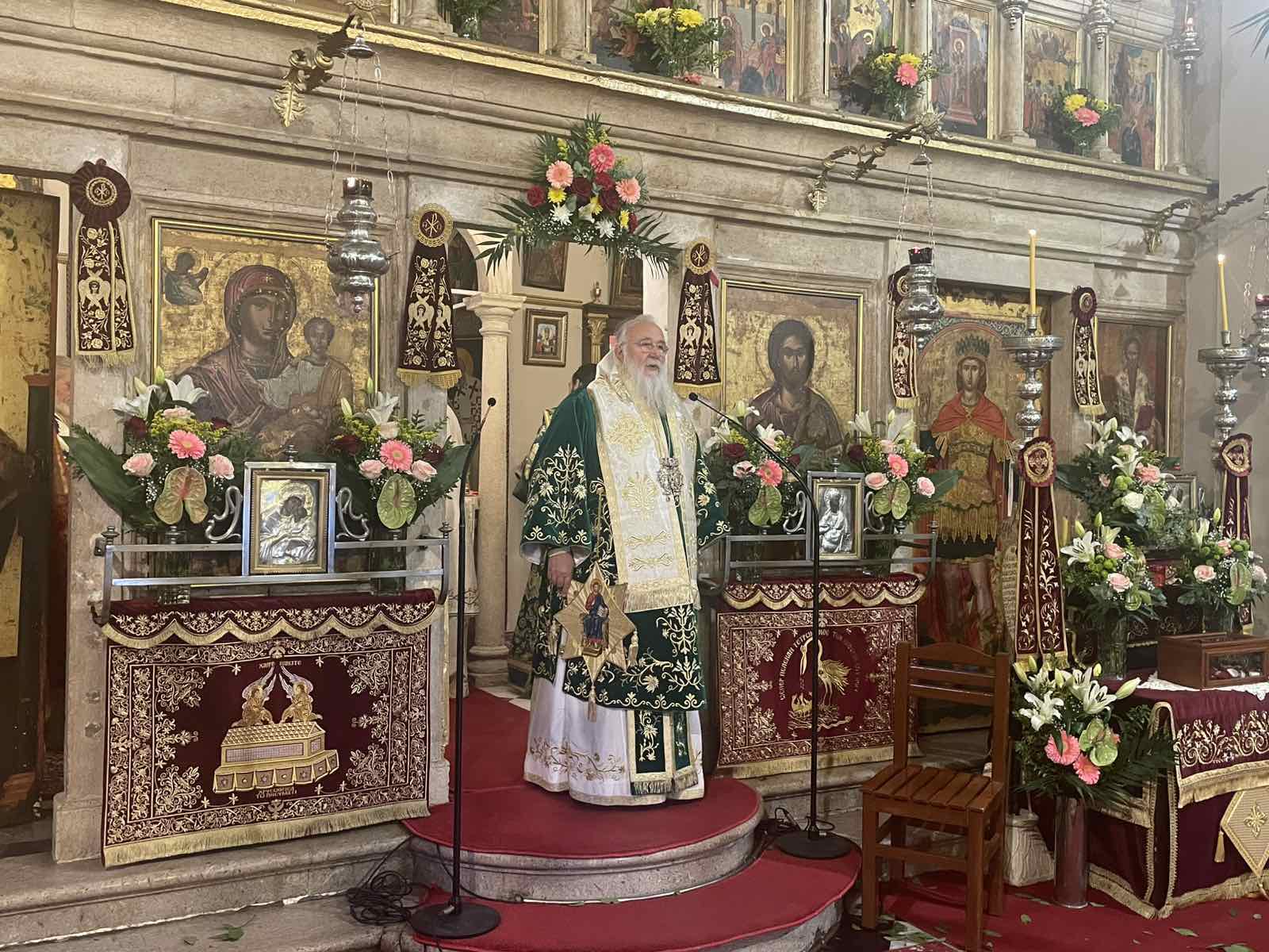 Τον θείο λόγο κήρυξε ο Μητροπολίτης Αχαΐας κ. Αθανάσιος, ο οποίος, αφού ευχαρίστησε τον κ. Νεκτάριο για την πρόσκληση και τη φιλοξενία, τόνισε ότι όταν τιμάται ένα πρόσωπο που μετέχει της εξουσίας ως άγιο, τότε αυτό προκαλεί πολλή συγκίνηση. Συνήθως όσοι βρίσκονται στην εξουσία, αγαπούνε την εξουσία και τον εαυτό τους. Η Αγία Θεοδώρα έζησε σε εποχή εγκλημάτων από ανθρώπους που είχαν εξουσία, με σκοπό να μην την χάσουν. Όμως ο θάνατος όλων αυτών δεν ήταν συνήθως ειρηνικός. Το να αγιάσει κάποιος σε τέτοια κατάσταση ήταν γεγονός ξεχωριστό. Η Αγία έζησε σε μία εποχή απίθανης ιδεολογικής σύγκρουσης και πάλεψε για την αλήθεια. Οι άνθρωποι της εξουσίας, όταν βλέπουν την εικόνα του Χριστού να τους κοιτά κατάματα, νιώθουν την πρόκληση και την πρόσκληση να γίνουν μιμητές Του, να γίνουν πράοι και ταπεινοί στην καρδιά, να νικήσουν τον κόσμο, τον οποίο αυτοί θέλουν να κατακτήσουν σήμερα. Οι εικόνες ήταν απωθητικές για όσους κοιτούν τον εαυτό τους. Η Αγία Θεοδώρα μας υπενθυμίζει ότι είμαστε εικόνες Θεού και αυτό είναι η πνευματική της κληρονομιά. ΟΙ υποκριτές αυτοδικαιώνονται με την αυτοεικόνα τους, άλλοι φεύγουν από το σπίτι του Θεού για να ζήσουν με κέντρο τον εαυτό τους και τις ηδονές.
