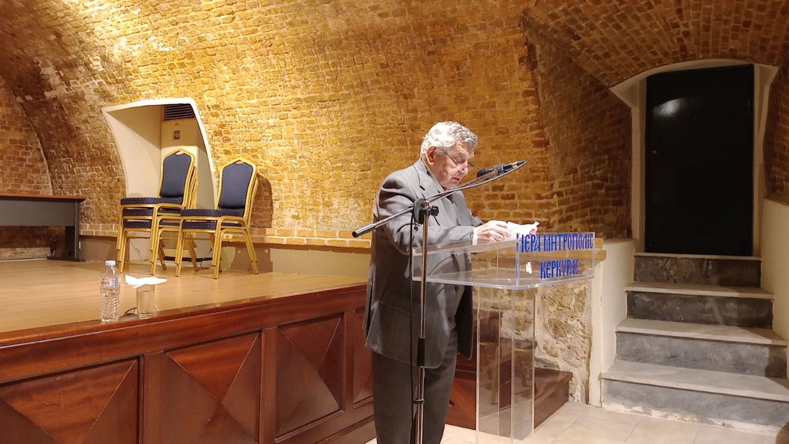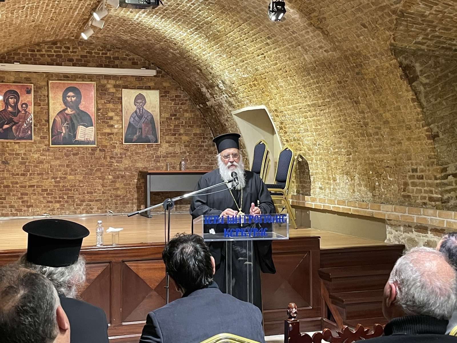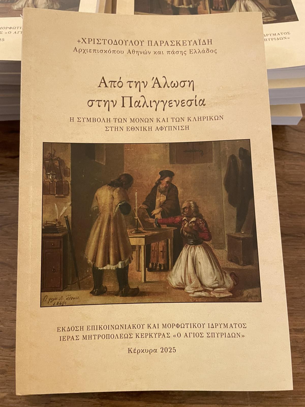 Εκδήλωση εν όψει της εθνικής μας επετείου της 25ης Μαρτίου διοργανώθηκε από την Ιερά Μητρόπολη Κερκύρας στο Πνευματικό Κέντρο της τοπικής Εκκλησίας το απόγευμα της Δευτέρας 16 Μαρτίου 2026. Κατ’ αυτήν παρουσιάστηκε ένα ανέκδοτο μέχρι σήμερα βιβλίο του μακαριστού Αρχιεπισκόπου Αθηνών και πάσης Ελλάδος κυρού Χριστοδούλου, με τίτλο «Από την Άλωση στην Παλιγγενεσία- η συμβολή των Μονών και των κληρικών στην εθνική αφύπνιση» , που εξέδωσε, σε επιμέλεια του κ. Γιώργου Παπαθανασόπουλου, στενού συνεργάτη του μακαριστού, το Επικοινωνιακό και Μορφωτικό Ίδρυμα της Ιεράς Μητροπόλεως «Ο Άγιος Σπυρίδων», κατόπιν πρωτοβουλίας του Σεβασμιωτάτου Μητροπολίτου κ. Νεκταρίου.