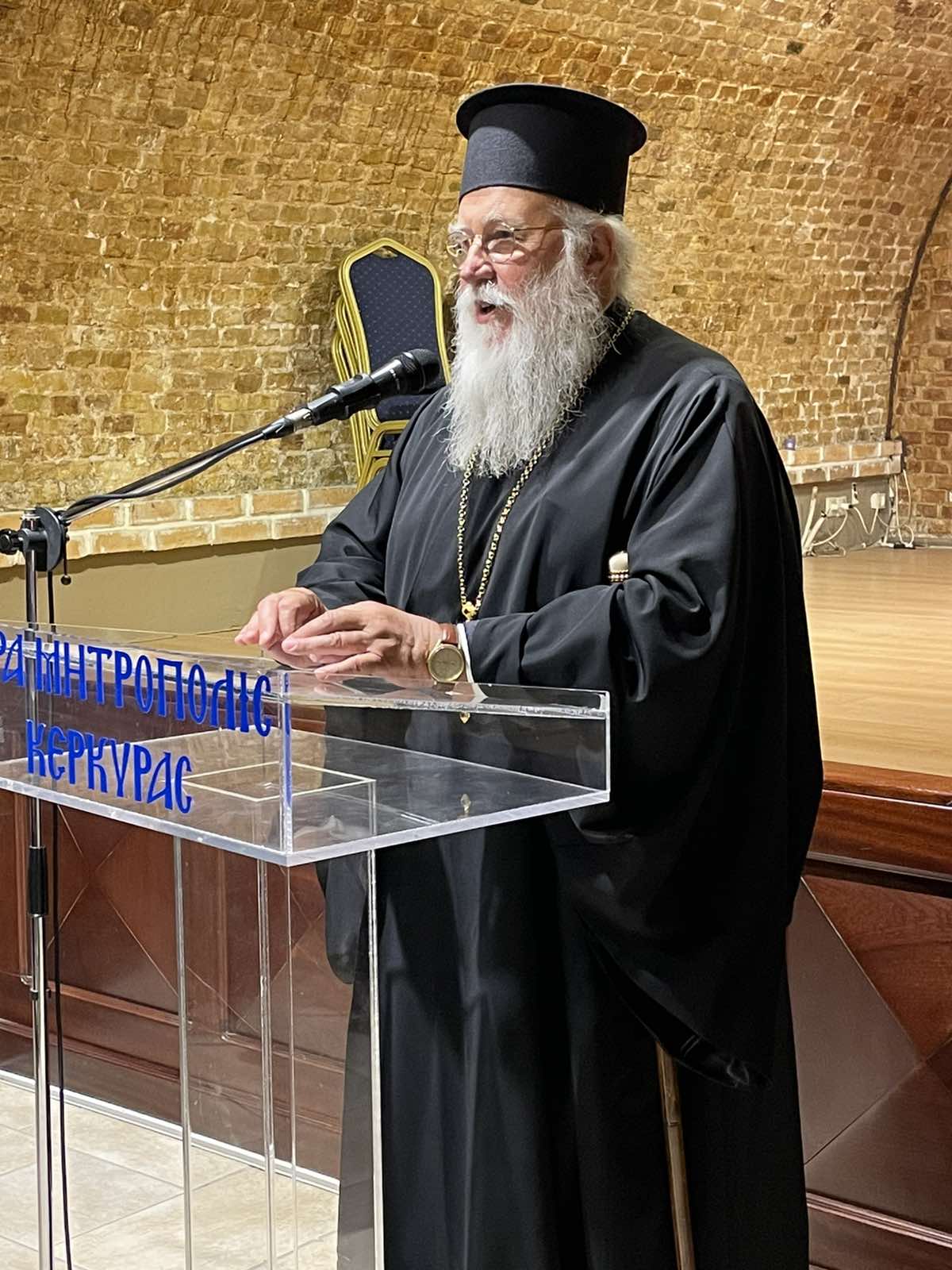 Όπως επεσήμανε ο Μητροπολίτης Κερκύρας, ο μακαριστός Αρχιεπίσκοπος Χριστόδουλος υπήρξε ένας ανάλογα φωτισμένος ηγέτης, ιεράρχης και λόγιος, με τους φωτισμένους κληρικούς και μοναχούς, που κράτησαν ζωντανή την πίστη στον Χριστό και την αγάπη για την ελευθερία της πατρίδας στα δύσκολα χρόνια της Τουρκοκρατίας, καθότι ζούμε ανάλογες εποχές, μόνο που η δουλεία σήμερα είναι πνευματική. Ο Αρχιεπίσκοπος Χριστόδουλος, με λόγο προφητικό και ενορατικό, έβλεπε την τυραννία της παγκοσμιοποίησης, η οποία, ως άλλος οδοστρωτήρας, ερχόταν να ισοπεδώσει την ταυτότητα και την ιδιοπροσωπία των λαών και των ανθρώπων, και που οδηγεί στην αλλοτρίωση από τον Θεό και τον συνάνθρωπο. Το βιβλίο που η Ιερά Μητρόπολις εξέδωσε, στην πραγματικότητα είναι μία αφορμή αφύπνισης για τον λαό μας και πρέπει να γίνει βάση για να μπορέσουμε να κατανοήσουμε ότι η ιστορία του Γένους μας δεν διαγράφεται. Η εκδήλωση, είπε ο κ. Νεκτάριος, γίνεται στην ημέρα της μνήμης του Οσίου Χριστοδούλου, τον οποίο ο μακαριστός Αρχιεπίσκοπος με τη βιωτή του τίμησε. Ο Αρχιεπίσκοπος Χριστόδουλος ενόχλησε, τόσο με τη στάση του έναντι της διαγραφής του θρησκεύματος από τις ταυτότητες, όσο και με την κριτική στην παγκόσμια τάξη πραγμάτων. Σήμερα δεν ενοχλούμαστε που είμαστε φακελωμένοι με τις νέες ταυτότητες και παρακολουθούμαστε, σημάδι της αλλοτρίωσής μας. Ο Αρχιεπίσκοπος Χριστόδουλος έδειξε πίστη και αγάπη για την Εκκλησία και την πατρίδα μας και γι’ αυτό η τοπική Εκκλησία ανταποκρίθηκε στο αίτημα του κ. Παπαθανασόπουλου να εκδοθεί το βιβλίο αυτό. Ο κ. Νεκτάριος ευχαρίστησε τον κ. Παπαθανασόπουλο και όσους συμμετείχαν στην εκδήλωση.