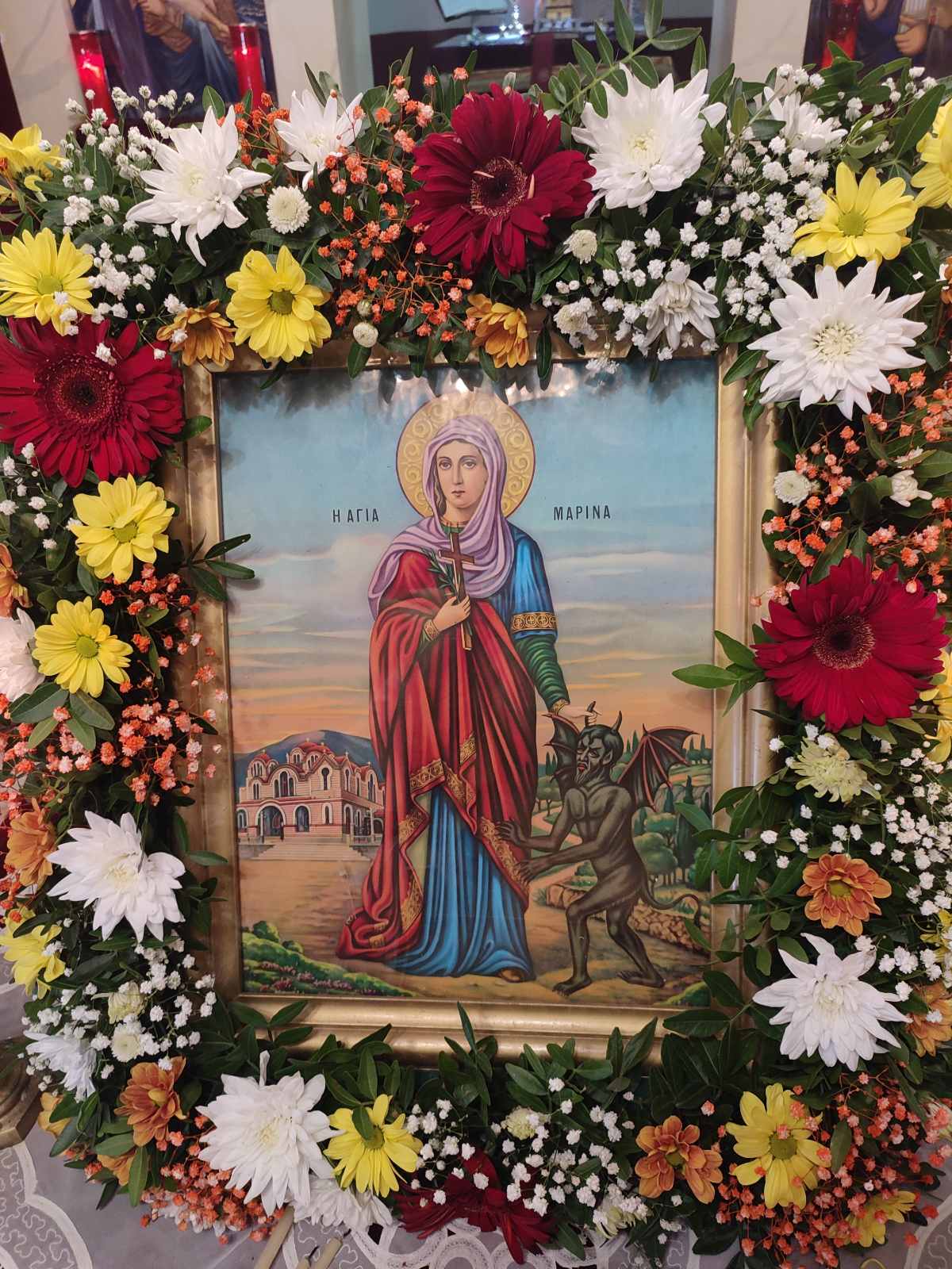 Στο τέλος, ο Σεβασμιώτατος ευχήθηκε το παράδειγμα της Αγίας Μαρίνας να χαλυβδώσει τον εσωτερικό μας άνθρωπο, να ενδυναμώσει την πίστη μας, να αγαπήσουμε περισσότερο το Χριστός μας και να αντισταθούμε στην ποικίλη κακία της εποχής μας. Επίσης, ευχήθηκε χρόνια πολλά στους εορτάζοντες και οι παραθεριστές να επιστρέψουν περισσότερο οικοδομημένοι πνευματικά.
