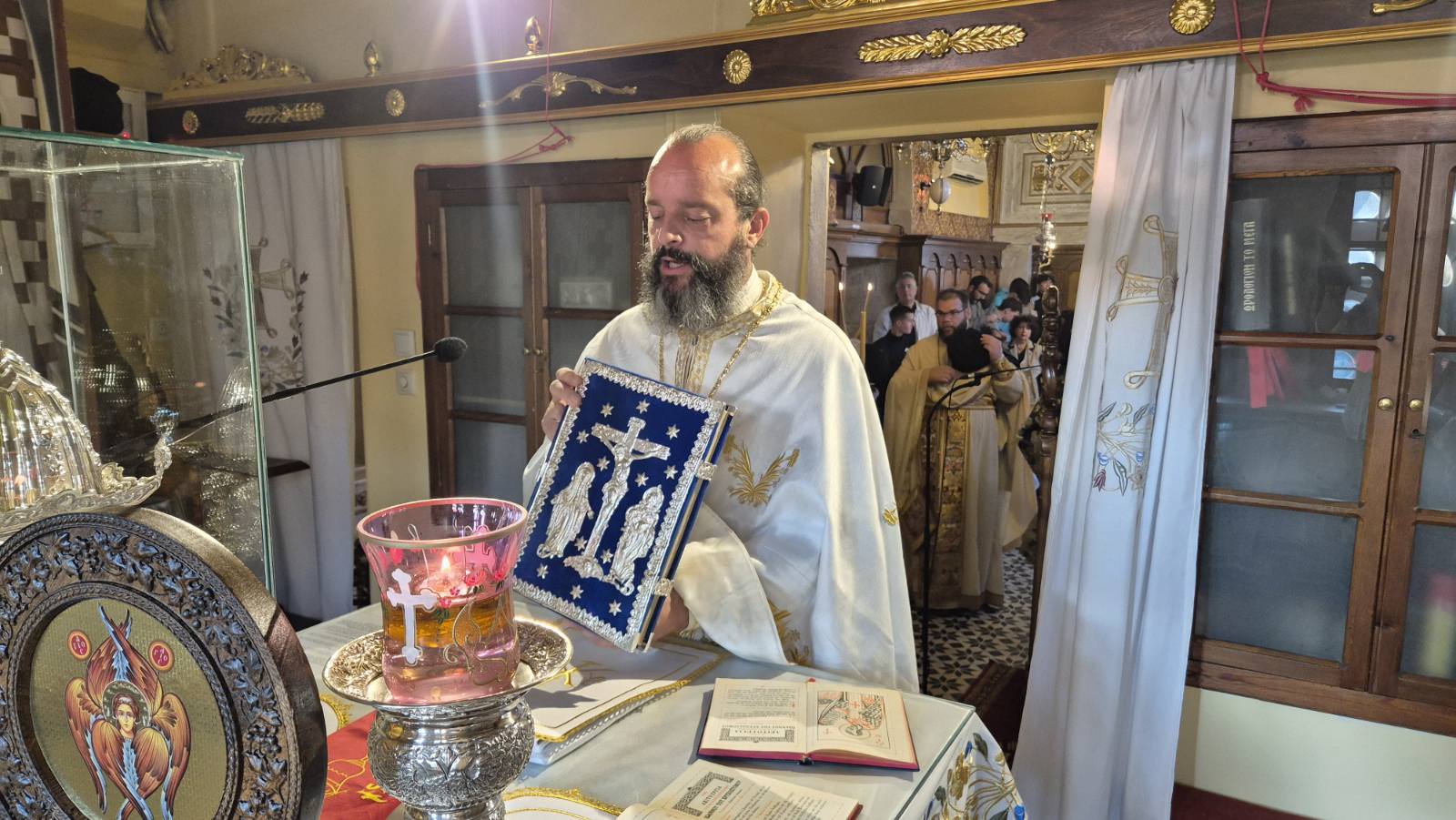 Κατά την ομιλία του, ο Σεβασμιώτατος απευθυνόμενος στο πυκνό εκκλησίασμα αποτελούμενο τόσο από προσκυνητές και φίλους της Ιεράς Μονής, όσο και από τους μαθητές, αναφέρθηκε αρχικά στην αποστολική περικοπή που αναγνώστηκε από την προς Γαλάτας επιστολή του Αποστόλου Παύλου. Σε αυτήν, ο Απόστολος Παύλος γράφοντας προς τους πιστούς της Γαλατίας της Μικράς Ασίας, λέγει «οἱ δὲ τοῦ Χριστοῦ τὴν σάρκα ἐσταύρωσαν σὺν τοῖς παθήμασι καὶ ταῖς ἐπιθυμίαις» (Γαλ. 5, 24). Δηλαδή, όσοι νίκησαν το σαρκικό φρόνημα, εγκολπώθηκαν την αλήθεια της πίστεως και της εν Χριστώ ζωής, υπερέβησαν τον εαυτό τους και έγιναν μέτοχοι της χάριτος του Αγίου Πνεύματος.