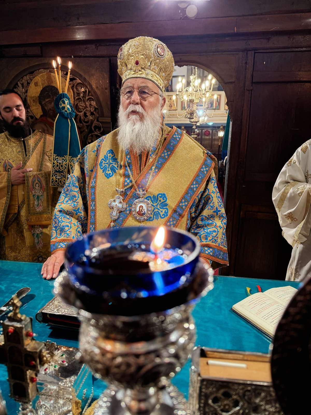 Τέλος, ο κ. Νεκτάριος εξέφρασε την χαρά του που βρέθηκε για μια ακόμη φορά στον παλαίφατο Ιερό Ναό των Αγίων Πάντων, στον οποίο διακονεί ο στενότατος συνεργάτης του και πνευματικό του παιδί Πρωτ. Θεμιστοκλής Μουρτζανός, ο οποίος εργάζεται με πίστη και αφοσίωση για το σώμα του Χριστού.