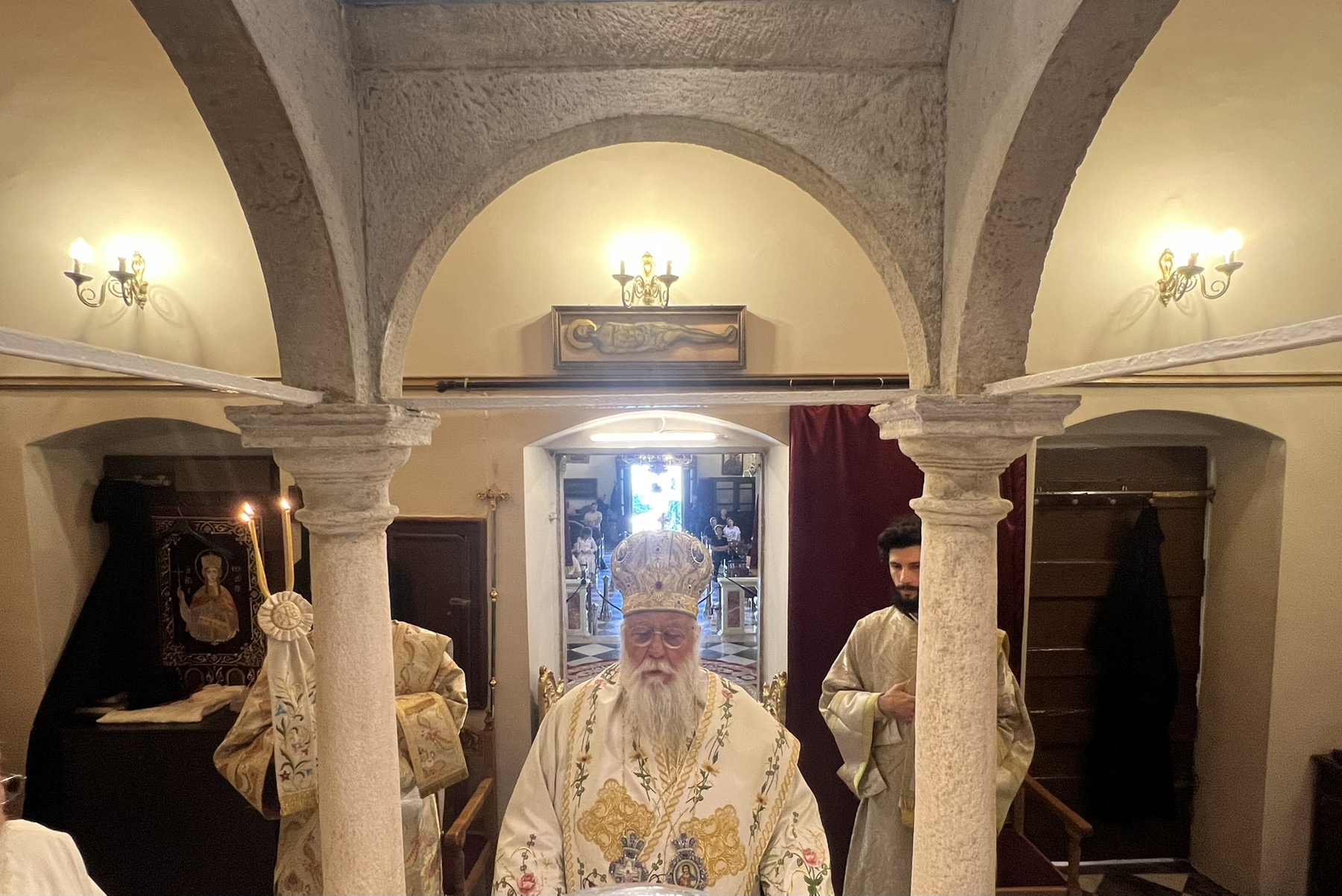 Την Κυριακή, 8 Ιουνίου 2025, Κυριακή της Πεντηκοστής, ο Σεβασμιώτατος Μητροπολίτης Κερκύρας, Παξών και Διαποντίων Νήσων, κ. Νεκτάριος, λειτούργησε, ομίλησε και τέλεσε τον εσπερινόν της γονυκλισίας, στον Ιερό Μητροπολιτικό Ναό της Υπεραγίας Θεοτόκου Σπηλαιωτίσσης στο κέντρο τηςΚέρκυρας. Μαζί με το Σεβασμιώτατο, λειτούργησαν ο Προϊστάμενος του Ιερού Μητροπολιτικού Ναού και Αρχιερατικός Επίτροπος Βορείου Κερκύρας, πρωτ. Σπυρίδων Προβατάς, καθώς και οι Διάκονοί του π. Ευσέβιος Πανδής και π. Σπυρίδων Πηγής.