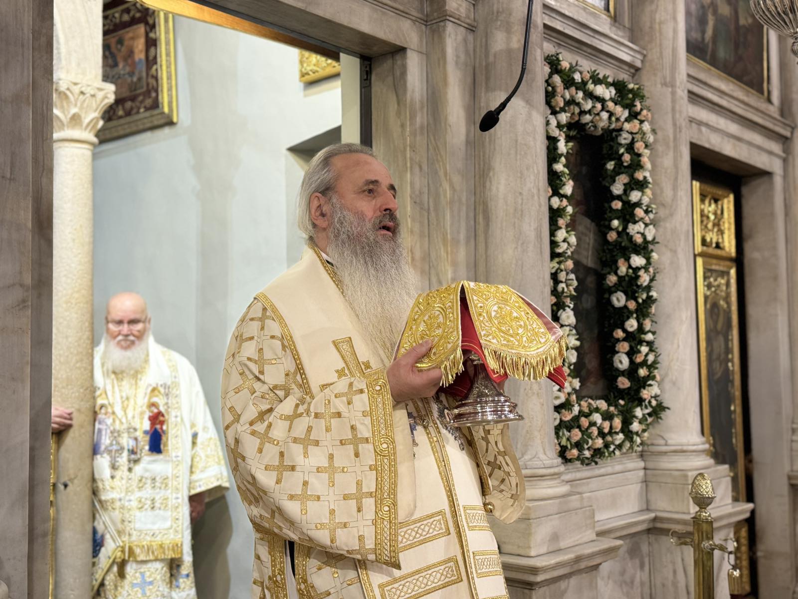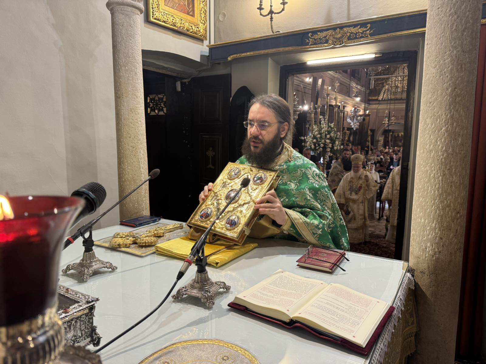 Το πρωί, στο Ιερό προσκύνημα, τελέστηκε Αρχιερατικός Συλλείτουργο, προεξάρχοντος του Σεβασμιωτάτου Μητροπολίτου Μπουκοβίνας και πάσης Μολδαβίας κ. Θεοφάνους, με τη συμμετοχή των προσκεκλημένων Αρχιερέων και του οικείου Ποιμενάρχου κ. Νεκταρίου. Ομίλησε ο κ. Θεοφάνης, ο οποίος, μεταξύ άλλων, τόνισε ότι ο Άγιος Σπυρίδων είναι ένας μεγάλος Άγιος της Εκκλησίας, τον οποίο τιμούν οι πιστοί σε όλα τα μέρη του κόσμου, γιατί ήταν μεγάλη η αγάπη του τόσο προς τον Θεό όσο και προς τον συνάνθρωπο. Η σημασία της αγάπης φαίνεται και στην παραβολή του Λαζάρου και του ανελεήμονος πλουσίου, την οποία διαβάζει η Εκκλησία την πρώτη Κυριακή του Νοεμβρίου. Ό,τι σπείρουμε σ’ αυτή τη ζωή, θερίζουμε στην αιωνιότητα. Αν σπείρουμε αγάπη, αγάπη θα θερίσουμε. Αν θέλουμε να χαρίζουμε χαρά στον άλλο, χαρά θα λάβουμε.Αν αγαπήσουμε τον Χριστό, όπως μας αγαπά Εκείνος, τότε θα μπορέσουμε να αγαπήσουμε και τον συνάνθρωπο. Η αγάπη εκφράζεται και με την ελεημοσύνη, που είναι το πρώτο σημείο. Υπάρχει και η πνευματική ελεημοσύνη, δηλαδή η προσευχή για όλους τους ανθρώπους που βρίσκονται σε δύσκολες συνθήκες, η προσευχή για όλο τον κόσμο, που ευλογείται από τον Θεό. Ας μας χαρίζει ο Θεός καρδιά ανοιχτή, για εκείνους που βρίσκονται σε πολέμους, σε δικαστήρια, σε χωρισμούς, σε μαρτύρια και υποφέρουν είτε από φτώχεια είτε από άλλες δυσκολίες. Αυτό εκφράζει ο Άγιος Σπυρίδωνας για τη ζωή μας και αυτόν καλούμαστε να μιμηθούμε.