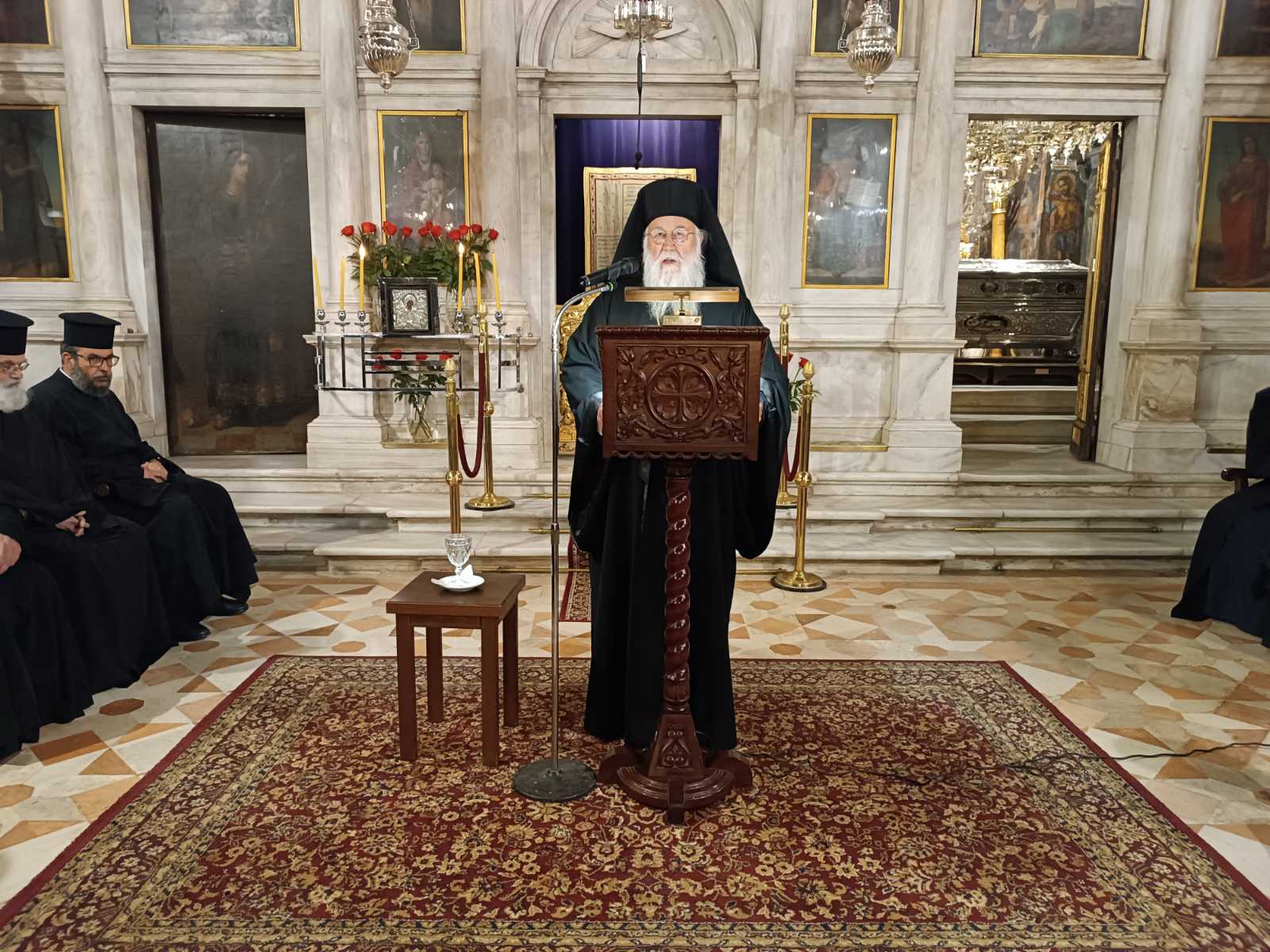 Ακόμη, ο Σεβασμιώτατος αναφέρθηκε στην πατερική διδασκαλία, υπενθυμίζοντας τον λόγο του Μεγάλου Αθανασίου, ότι «Αὐτὸς γὰρ ἐνηνθρώπησεν, ἵνα ἡμεῖς θεοποιηθῶμεν», τονίζοντας ότι η κορύφωση της θείας οικονομίας είναι ο Σταυρός του Χριστού για να ακολουθήσει η Ανάσταση.