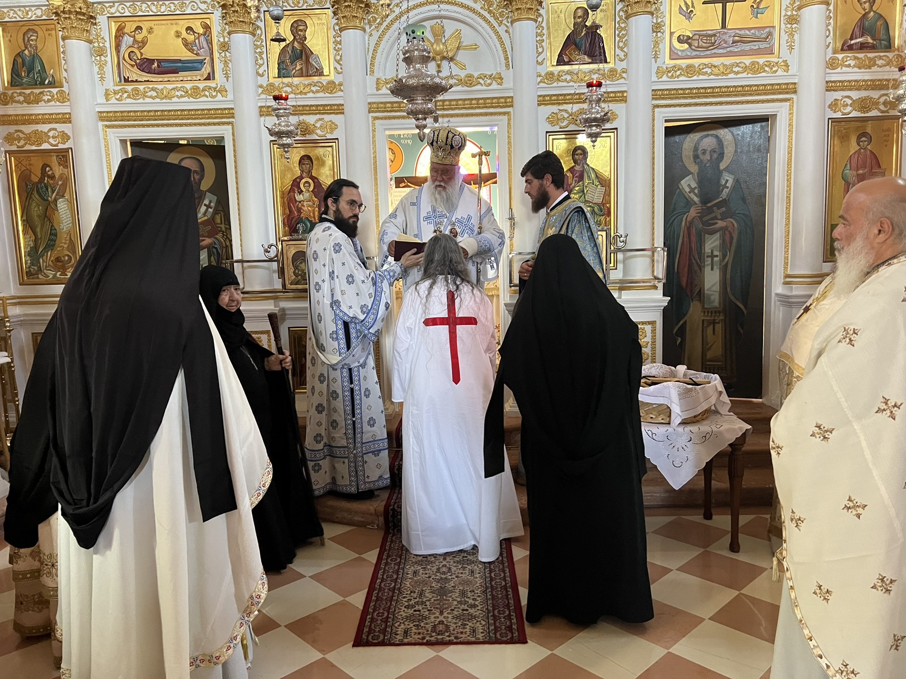Την Τετάρτη, 11 Ιουνίου 2025, εορτή των Αγίων ενδόξων και πανευφήμων Αποστόλων Βαρθολομαίου και Βαρνάβα αλλά και του ἕν ἁγίοις Πατρός ημώνΛουκά, Αρχιεπισκόπου Συμφερουπόλεως του ιατρού, ο Σεβασμιώτατος Μητροπολίτης Κερκύρας, Παξών και Διαποντίων Νήσων, κ. Νεκτάριος,λειτούργησε στη γυναικεία Ιερά Μονή Αγίου Δημητρίου, στην περιοχή Αγίων Δούλων της Βορείου Κέρκυρας. Στην εν λόγω Ιερά Μονή εγκαταβιεί μικρά αδελφότητα υπό της σεβαστής γερόντισσας Αγαθοκτίστης. Κατά τη διάρκεια της Θείας Λειτουργίας, ο Σεβασμιώτατος έκειρε εις Μεγαλόσχημον Μοναχήν, μία εκ των αδελφών της Ιεράς Μονής, η οποία έλαβε και το όνομα Μαριάμ.
