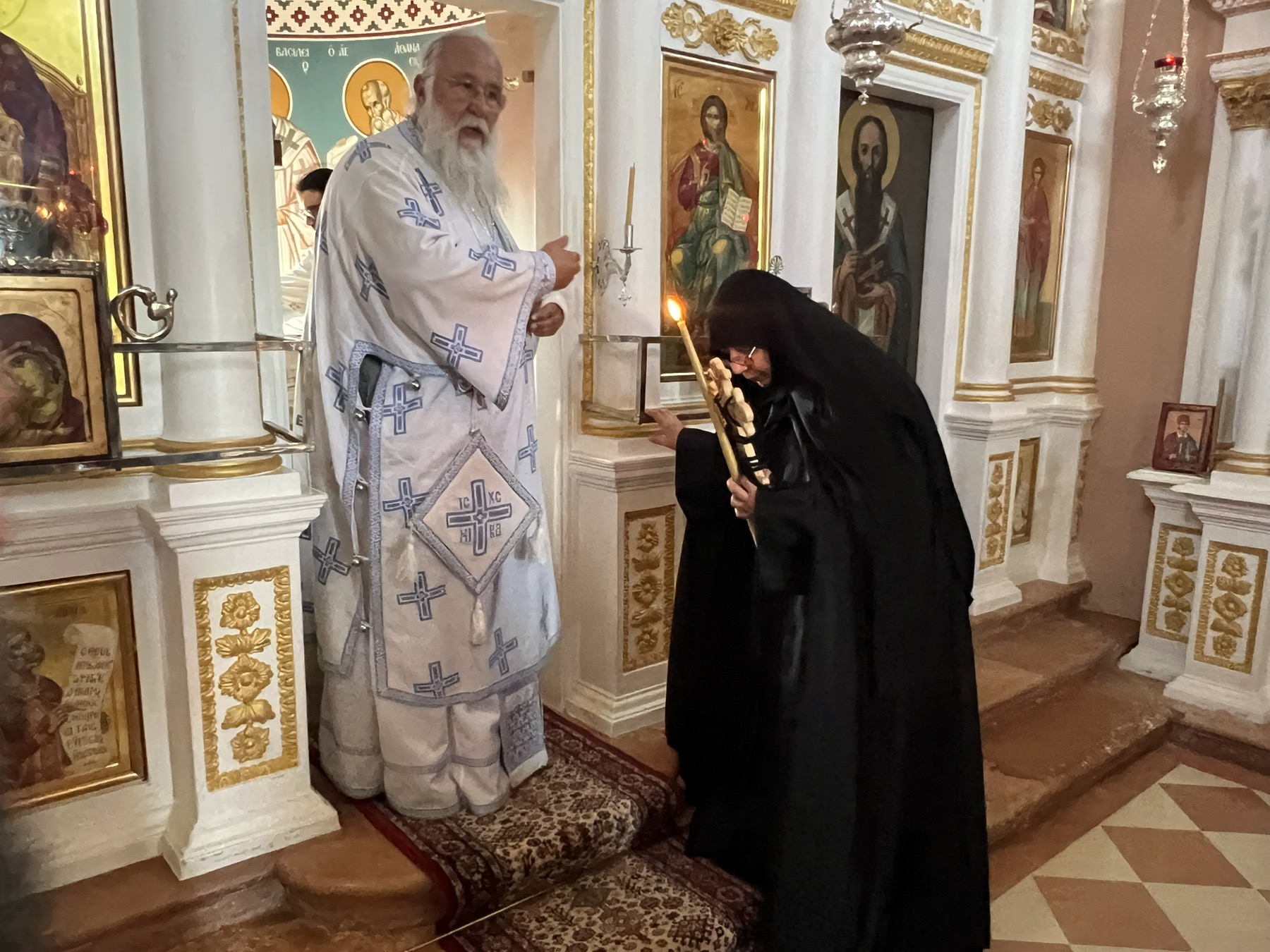 Στο λόγο του, ο Σεβασμιώτατος τόνισε ότι όταν έναςάνθρωπος αφήνει τα εν κόσμω επιλέγοντας την «αγγελοειδή» πολιτεία του μοναχισμού, τότε στον ουρανό συντελείται μεγάλη χαρά, καθώς οι μοναχοί αποτελούν το ξεχωριστό και επίλεκτο τάγμα της Εκκλησίας. Επίσης, επεσήμανετη μεγάλη σημασία που έχει για το μοναχικό αγώνα η προσευχή, η ταπείνωση,η αμεριμνησία, η υπακοή και αγάπη για την Γερόντισσα και τον Πνευματικό.Μόνον έτσι ο μοναχός, αγωνιζόμενος, με την ενίσχυση της καθαρτικής και αγιαστικής ενέργειας του Αγίου Πνεύματος μπορεί να γνωρίσει και να κατανοήσει την αληθινή αγάπη του Θεού και να την ακτινοβολήσει στην αδελφότητα και στον κόσμο. Παράλληλα, χρειάζεται να υπάρχει πραγματική αποταγή από τα του κόσμου ώστε ο μοναχός να είναι ελεύθερος από κάθε βαρίδιο της παλαιάς ζωής του και να ίπταται πνευματικά. Έτσι, επιτυγχάνεται η αντίσταση στο κοσμικό πνεύμα που ενίοτε παρεισφρέει στα μοναστήρια ενώ η τέλεια αυτή αφιέρωση στο Κύριό μας Ιησού Χριστό οδηγεί στη δικαίωση κατά την ένδοξη Ημέρα Κυρίου.