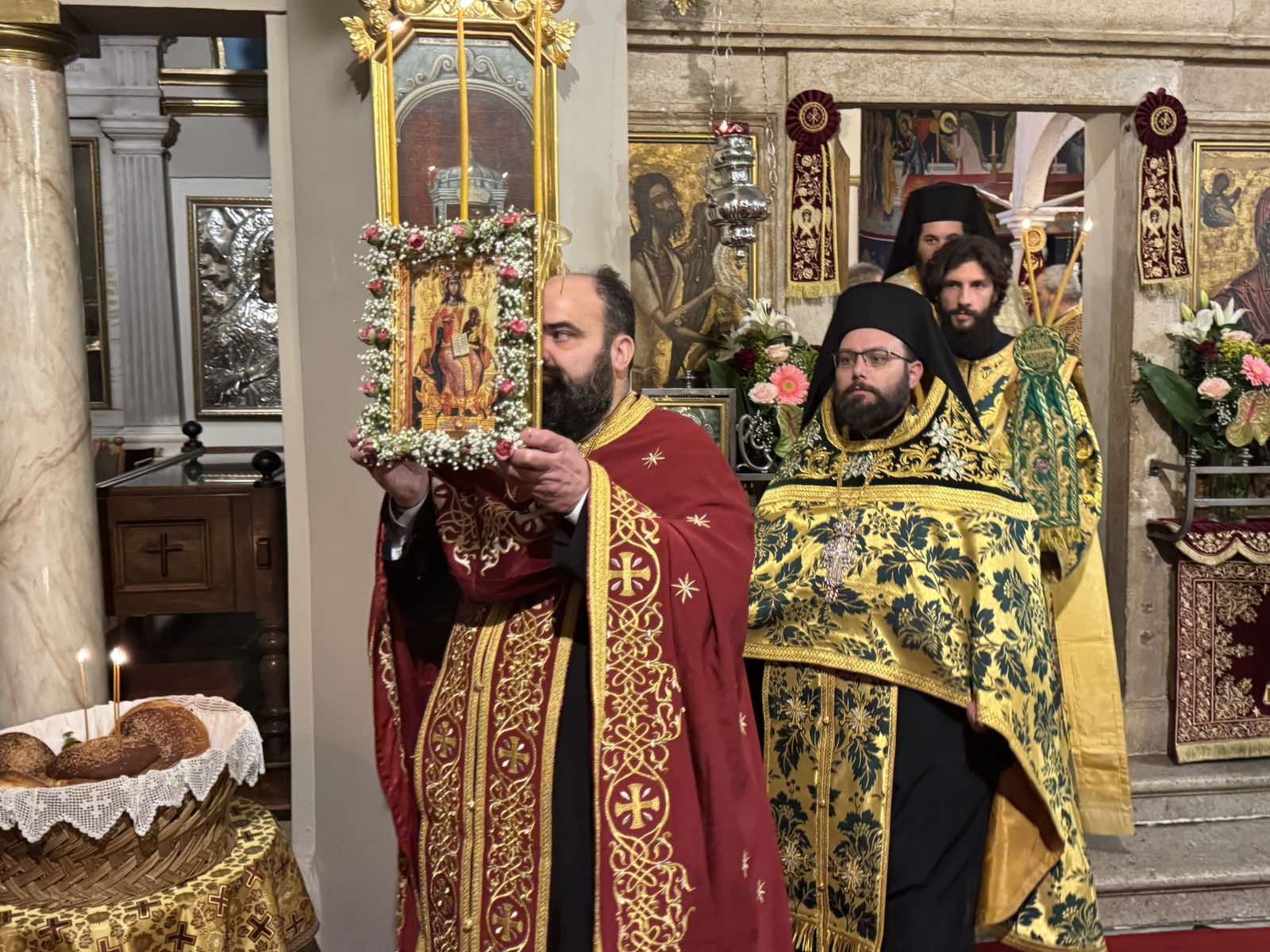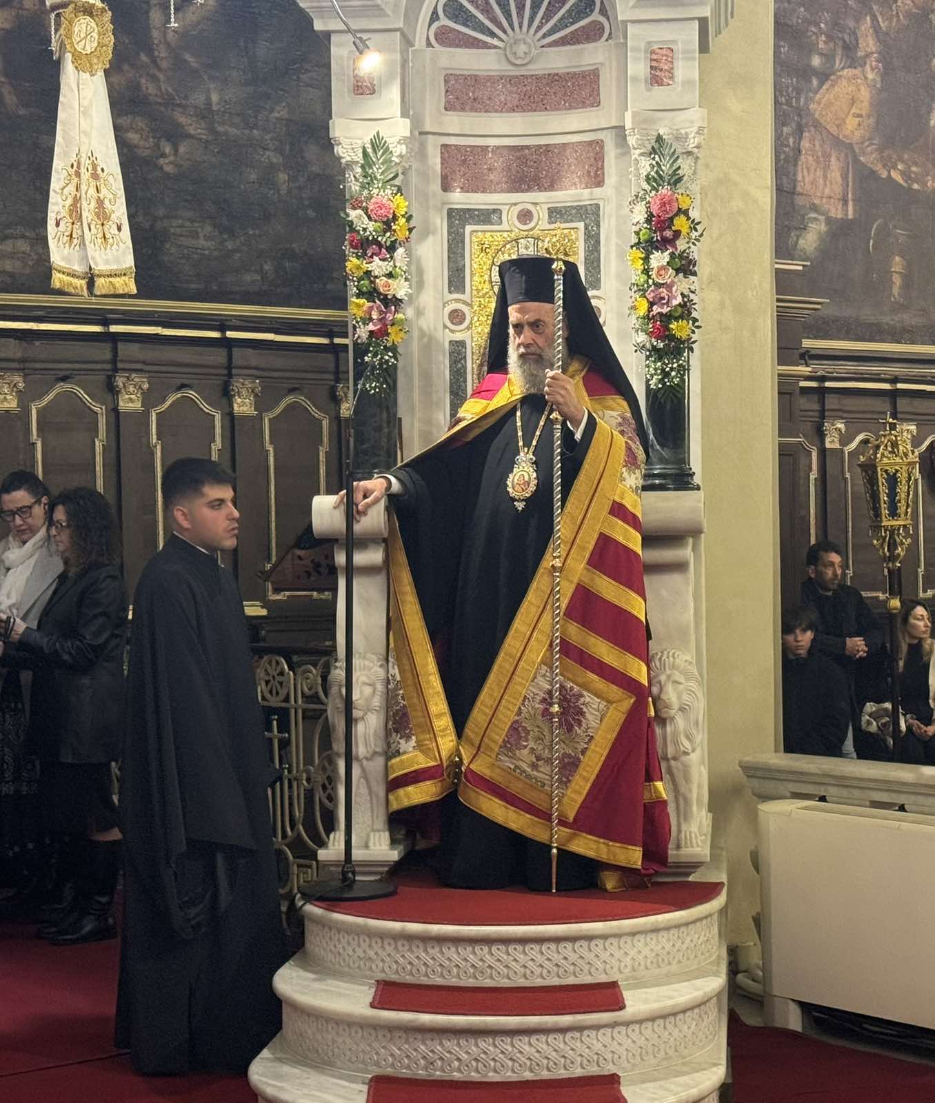 Στον Εσπερινό χοροστάτησε ο Σεβασμιώτατος Μητροπολίτης Θεσσαλιώτιδος και Φαναριοφερσάλων κ. Τιμόθεος, Κερκυραίος στην καταγωγή, ο Σεβασμιώτατος Μητροπολίτης Αχαΐας κ. Αθανάσιος και ο οικείος ποιμενάρχης Σεβασμιώτατος Μητροπολίτης Κερκύρας, Παξών και Διαποντίων Νήσων κ. Νεκτάριος.