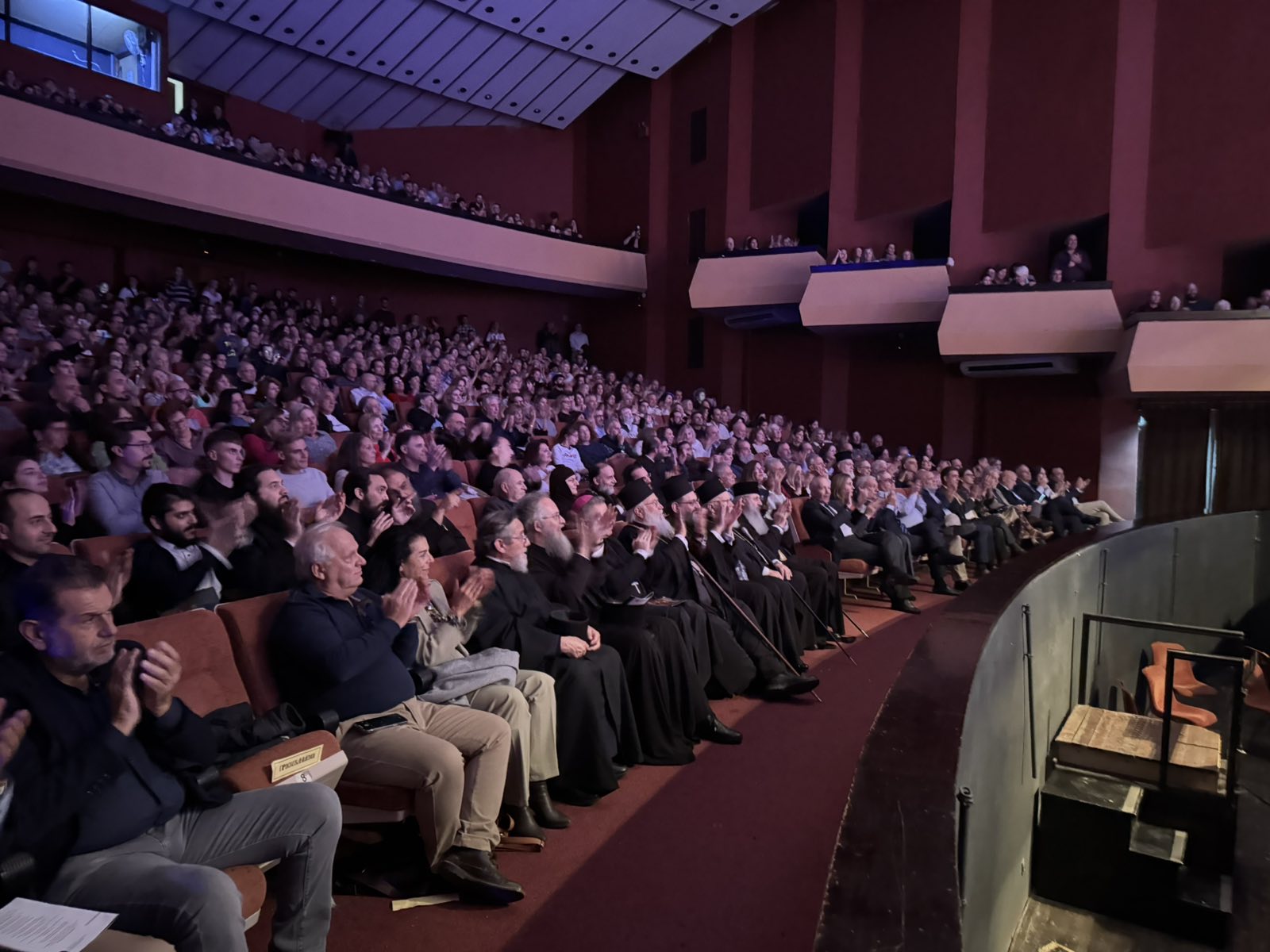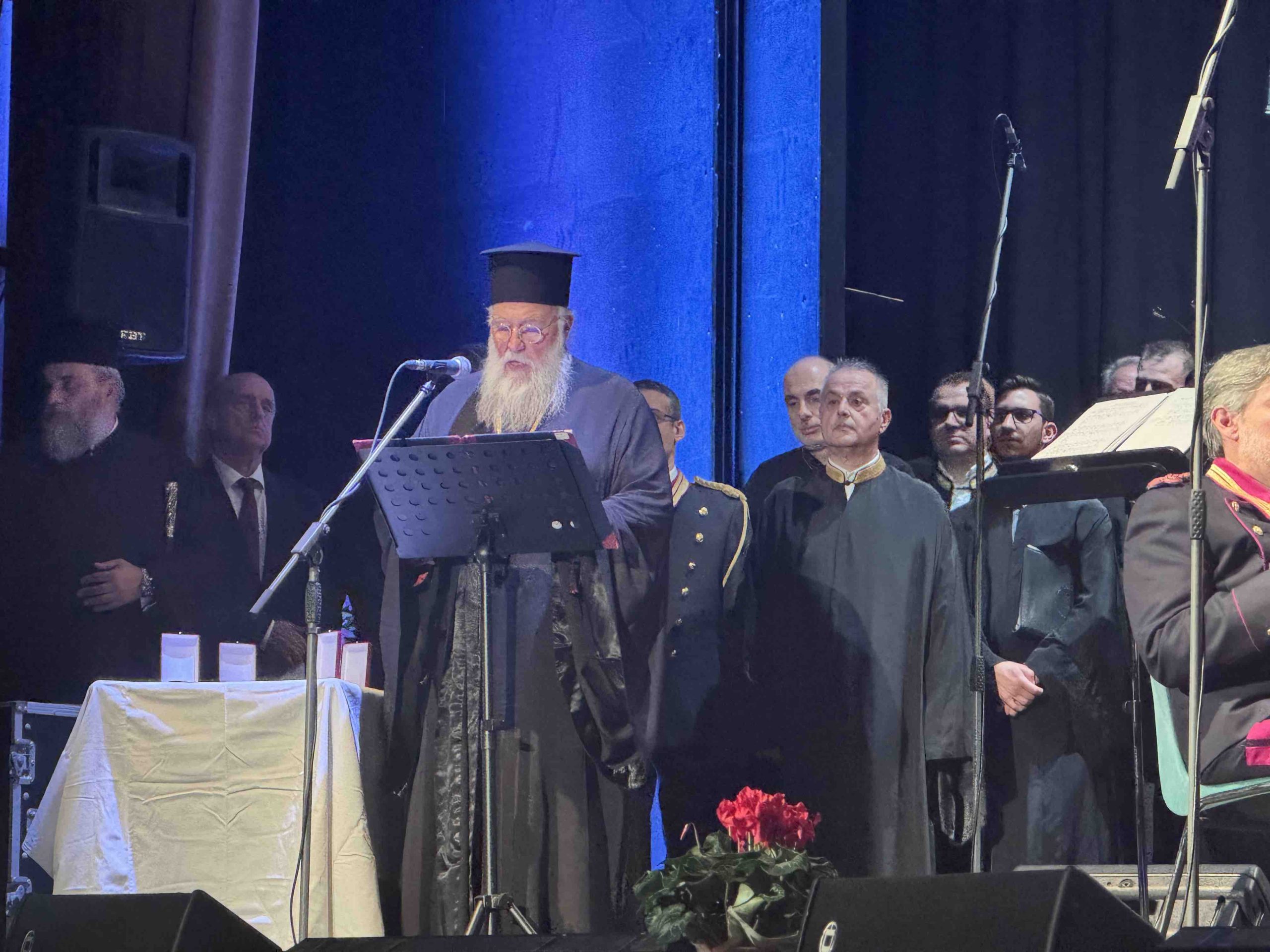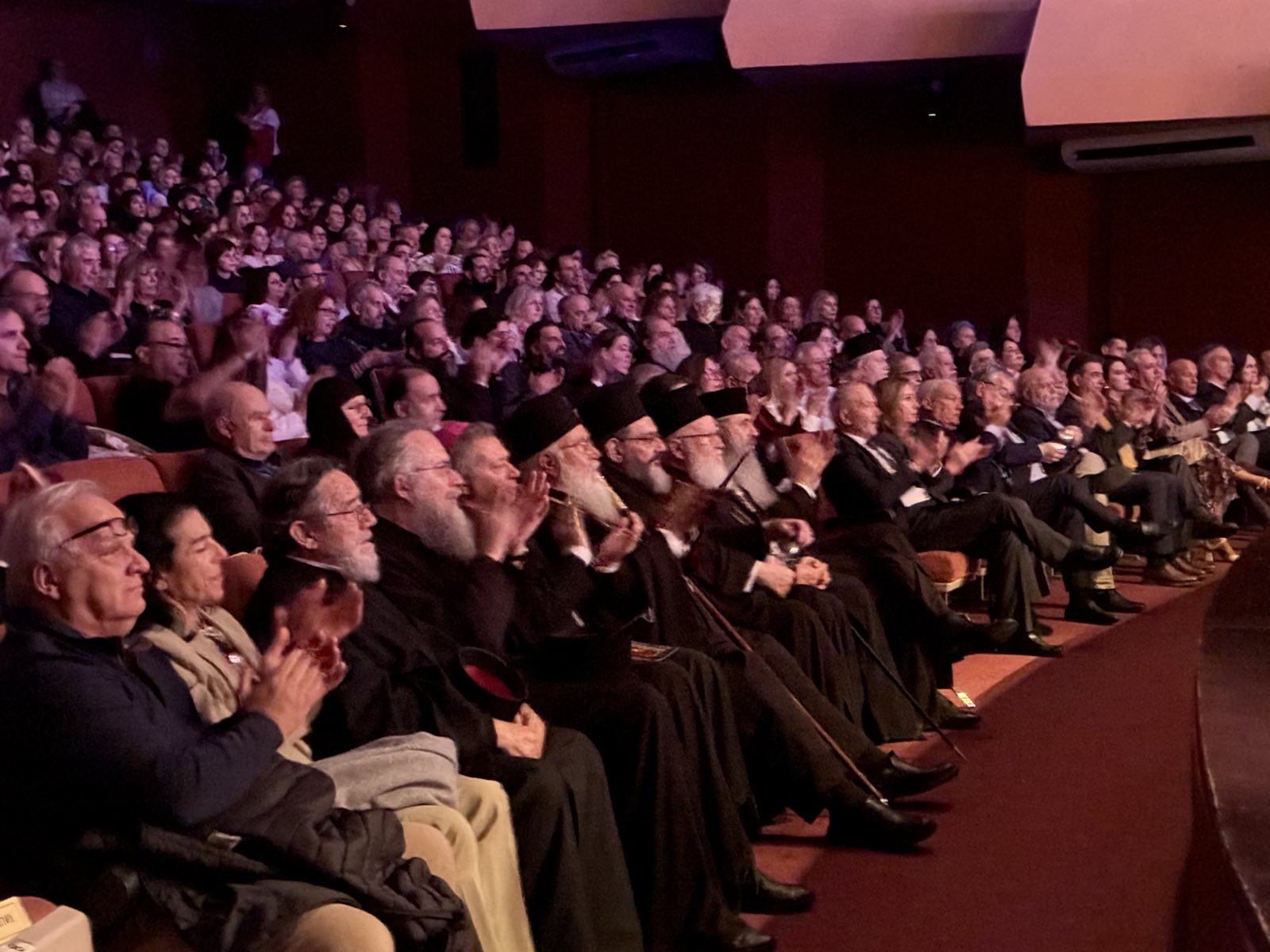 Μία ξεχωριστή συναυλία-λειτουργικό ορατόριο, με τη σύμπραξη της μπάντας της Παλαιάς Φιλαρμονικής Κερκύρας, υπό τη διεύθυνση του αρχιμουσικού Σπυρίδωνα Προσωπάρη, και της Χορωδίας της Σχολής Εκκλησιαστικής Μουσικής της Ιεράς Μητροπόλεως Κερκύρας «ΑΓΙΟΣ ΑΡΣΕΝΙΟΣ», υπό τη διεύθυνση του πρωτοψάλτη και χοράρχη Νικολάου Μακρόπουλου έζησαν το βράδυ του Σαββάτου 1ης Νοεμβρίου 2025 οι πολυπληθείς Κερκυραίοι που κατέκλυσαν το Δημοτικό Θέατρο Κέρκυρας. Το ορατόριο περιελάμβανε ύμνους από τη Θεία Λειτουργία, δοσμένους με μία εξαιρετικά πρωτότυπη αρμονική σύμπραξη των μουσικών παραδόσεων Δύσης και Ανατολής, ενώ η όλη εκδήλωση ήταν αφιερωμένη στα 1700 χρόνια από την Α’ Οικουμενική Σύνοδο και στο θαύμα του Πρωτοκύριακου στην Κέρκυρα, με τίτλο «Ο Άγιος Σπυρίδων στην παράδοση της Ορθοδοξίας και της Κέρκυρας». Κείμενα διάβασε ο ηθοποιός Σπύρος Βέργης, ενώ ξεχώρισε η εκπληκτική σύμπραξη στο Κοντάκιο του Αγίου Σπυρίδωνος και το ανέκδοτο μάθημα «Ύμνος στον Άγιο Σπυρίδωνα», σε υμνογραφική απόδοση του Κ. Θύμη, αλλά και η εξαιρετική μουσική σύνθεση του Σπύρου Κατσούρη «Ανεβαίνοντας στο καμπαναριό τ’ Αγιού».