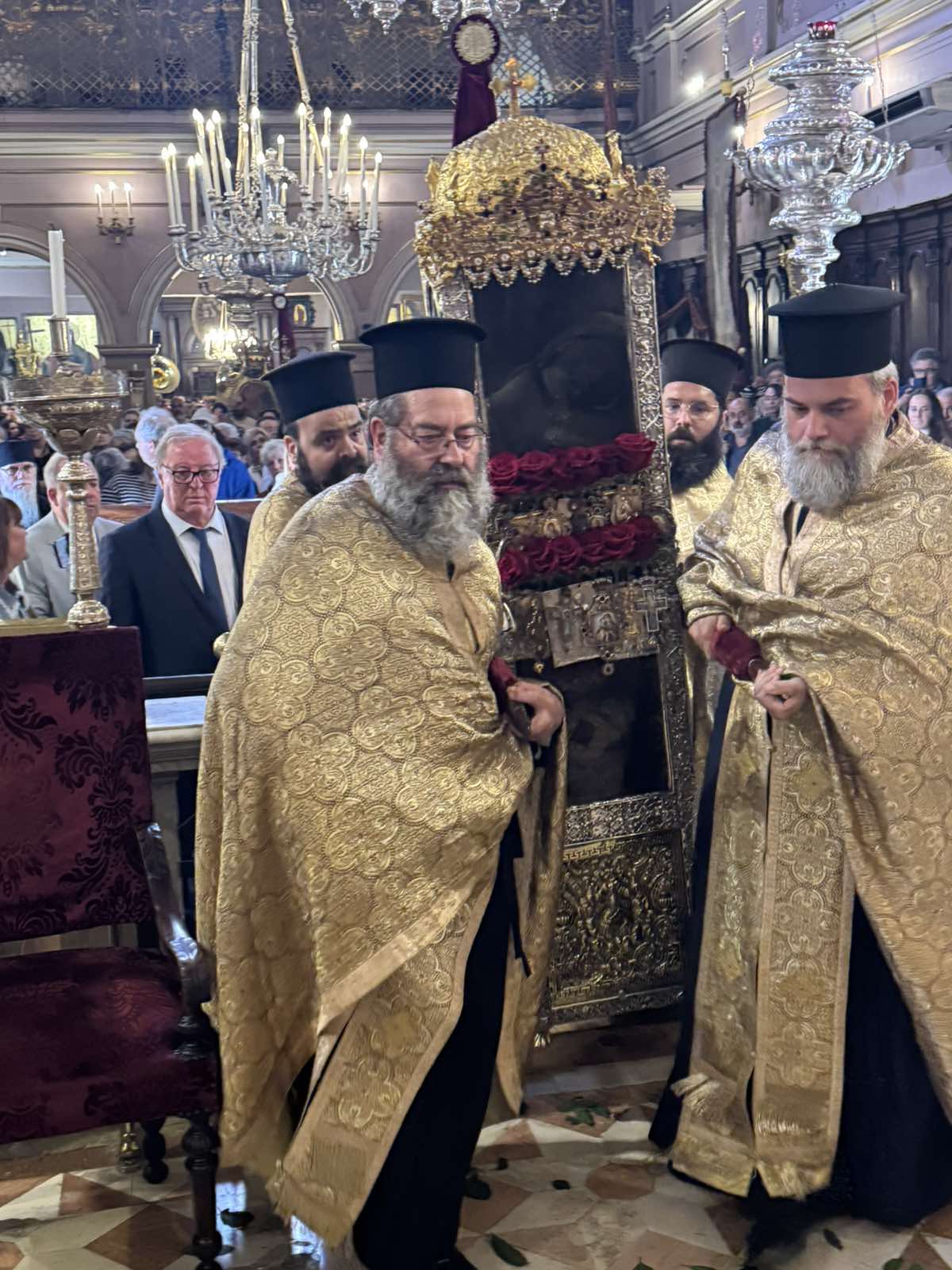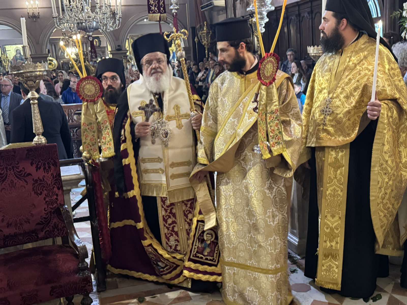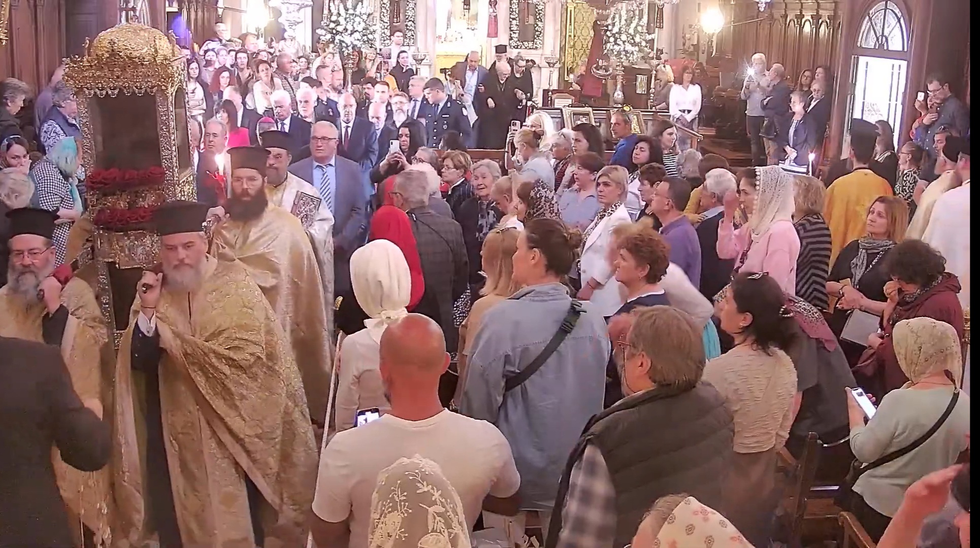 Προηγήθηκε η πανηγυρική ψαλμώδηση του «Χριστός Ανέστη», ενώ στην περιφορά προεξήρχε ο Σεβασμιώτατος Μητροπολίτης Βρεσθένης κ. Θεόκλητος, προσκεκλημένος του Σεβασμιωτάτου Μητροπολίτου Κερκύρας, Παξών και Διαποντίων Νήσων κ. Νεκταρίου. Κατά τα «μπάσματα» παιάνισαν προς τιμήν του Αγίου, κατά την κερκυραϊκή παράδοση, η Παλαιά Φιλαρμονική και η Φιλαρμονική ΜΑΝΤΖΑΡΟΣ, ενώ πλήθη κόσμου συμμετείχαν στην περιφορά τόσο εντός του ναού, όσο και στις θύρες, όπου κατά παράδοσιν βγαίνει το ιερό σκήνωμα και ευλογεί τον λαό, βασταζόμενο από τέσσερις κληρικούς, με την παρουσία και των αρχών του τόπου.