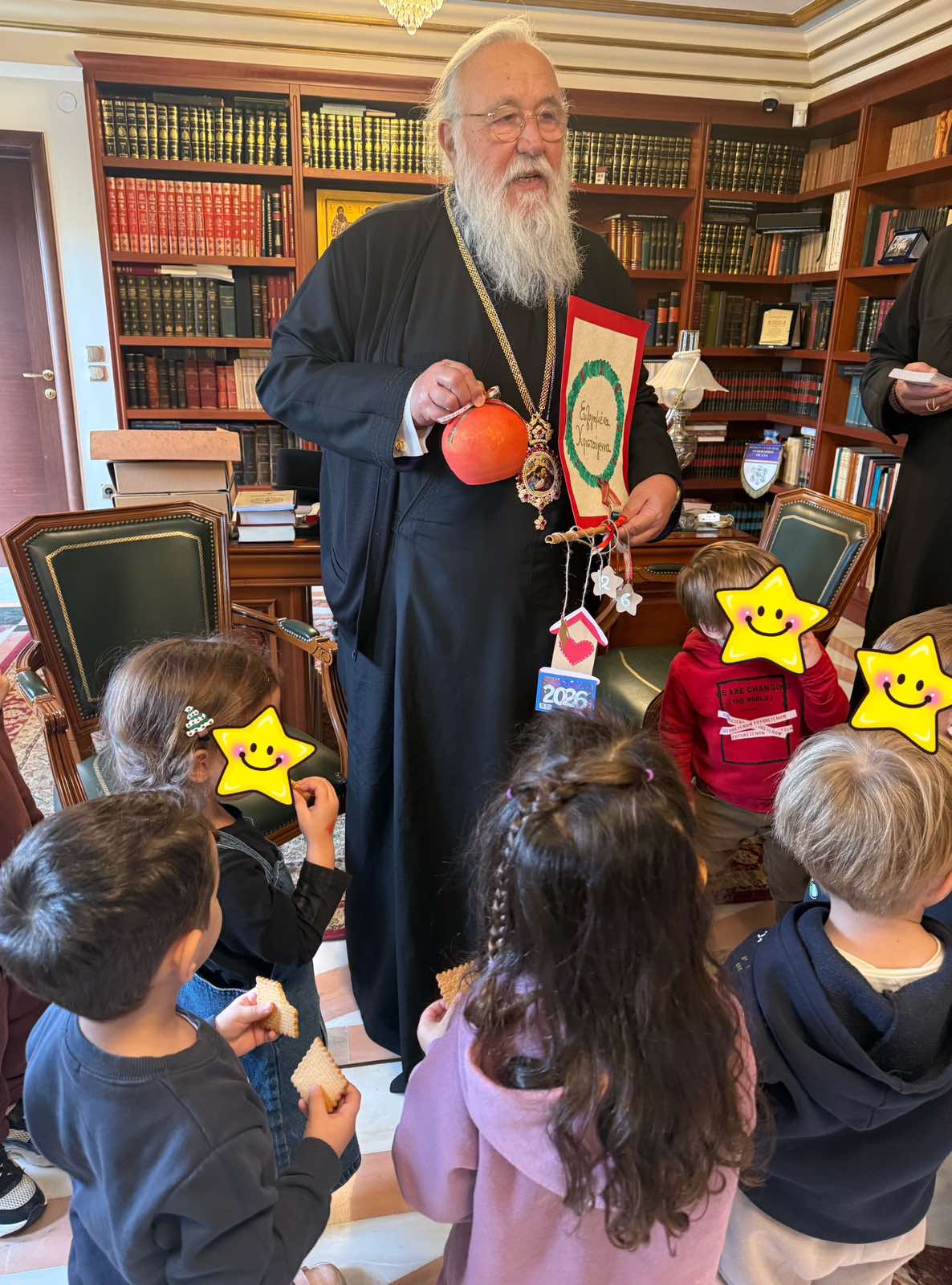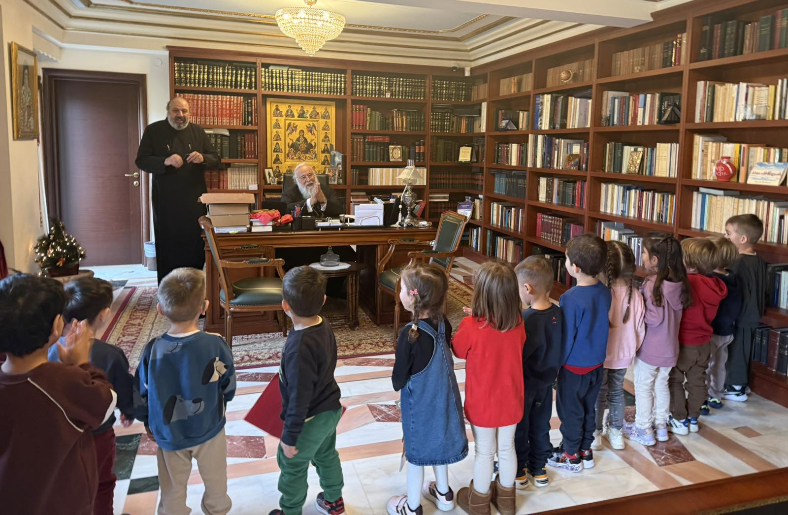 Μία πολύ ευχάριστη έκπληξη έζησε το μεσημέρι της Παρασκευής 19 Δεκεμβρίου 2025 ο Σεβασμιώτατος Μητροπολίτης Κερκύρας, Παξών και Διαποντίων Νήσων κ. Νεκτάριος. Αντιπροσωπεία των μικρών παιδιών του Βρεφονηπιακού Σταθμού «ΕΛΕΝΗ ΜΠΕΛΛΟΥ» της Ιεράς Μητροπόλεως τον επισκέφθηκε, μαζί με τη διευθύντρια κ. Κέλλυ Καρύδη και τις παιδαγωγούς, και του είπαν τα κάλαντα και του έδωσαν τις παιδικές ωραίες ευχές τους για τις άγιες ημέρες. Χαρούμενος και συγκινημένος ο κ. Νεκτάριος ευχαρίστησε ολοκάρδια τα παιδάκια για την αγάπη τους, τους είπε ότι είναι από τις πιο όμορφες στιγμές της ζωής του να νιώθει τα παιδιά κοντά του και κοντά στον Χριστό και τους έδωσε κεράσματα και ευλογίες, συγχαίροντας τη διευθύντρια και το προσωπικό.