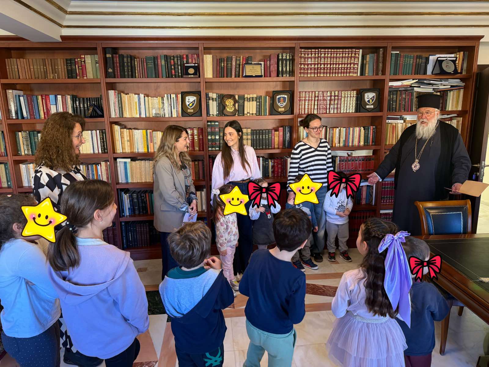 Αντιπροσωπεία των παιδιών του Βρεφονηπιακού Σταθμού της Ιεράς Μητροπόλεως και του ΚΔΑΠ «Εκλένη Μπέλλου», επισκέφθηκε το μεσημέρι της Μεγάλης Τρίτης 7 Απριλίου 2026 τον Σεβασμιώτατο Μητροπολίτη Κερκύρας, Παξών και Διαποντίων Νήσων κ. Νεκτάριο, προσφέροντάς του πασχαλινές κατασκευές, τον παραδοσιακό μπότη και τραγουδώντας του κάλαντα των ημερών. Ο κ. Νεκτάριος με ιδιαίτερη χαρά υποδέχτηκε τα μικρά παιδιά και τις παιδαγωγούς, εκφράζοντας την αγάπη του και τη χαρά του που τα παιδιά των δομών της Εκκλησίας ζούνε με τον δικό τους τρόπο την πίστη μας και κρατούνε ζωντανή την ελληνορθόδοξη παράδοση. Ο κ. Νεκτάριος προσέφερε ευλογίες στα παιδιά, τα οποία το πρωί εκκλησιάστηκαν στον ναό της Αγίας Τριάδος στο Ίδρυμα Χρονίως Πασχόντων «Η Πλατυτέρα».
