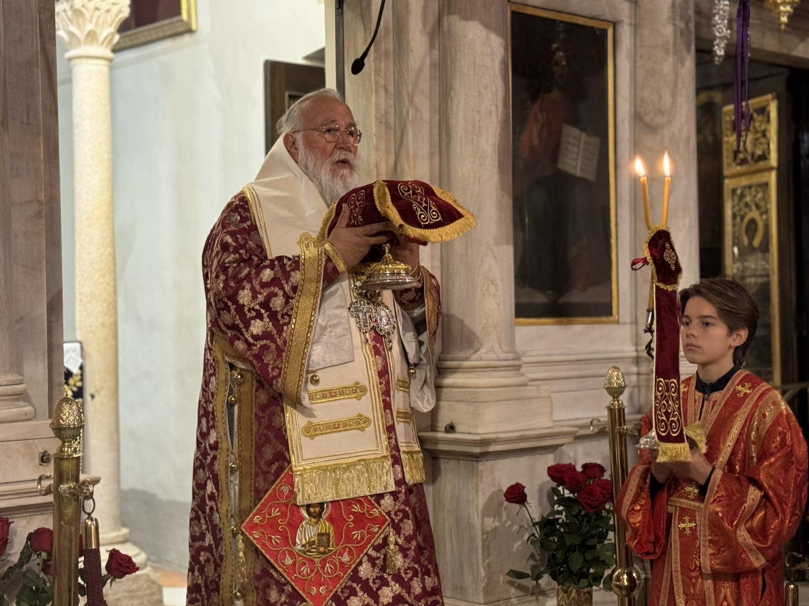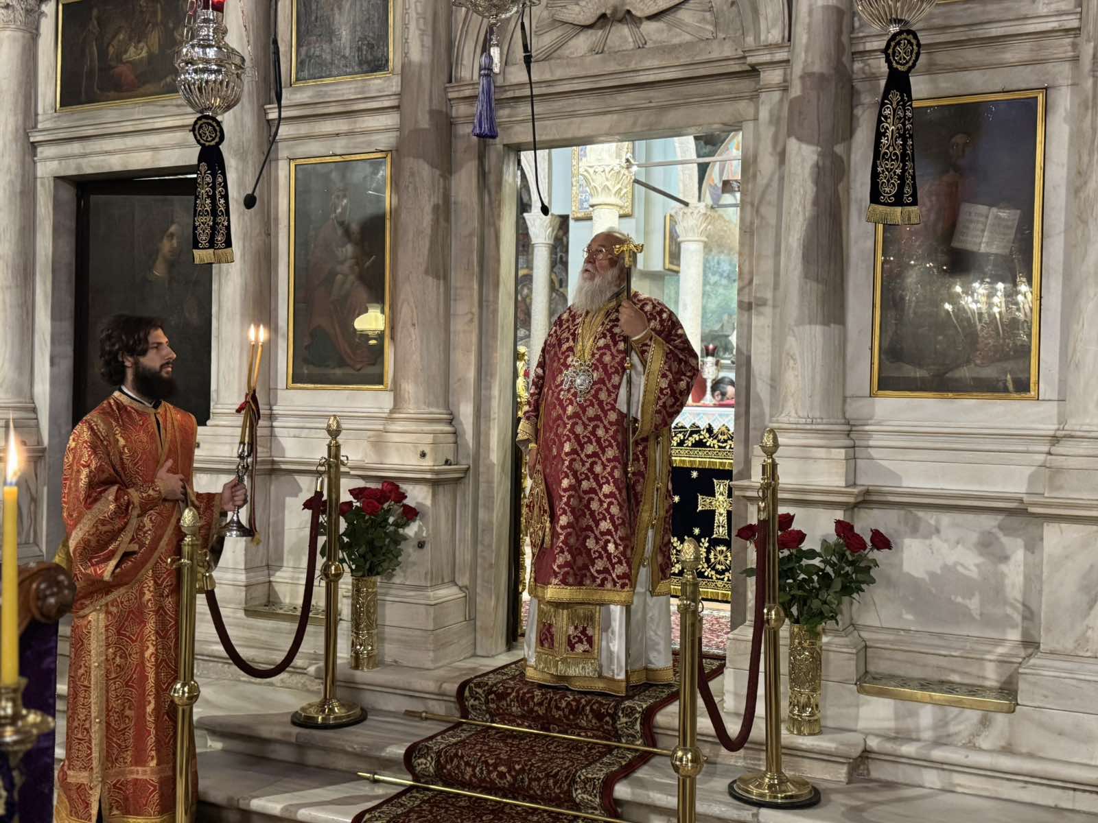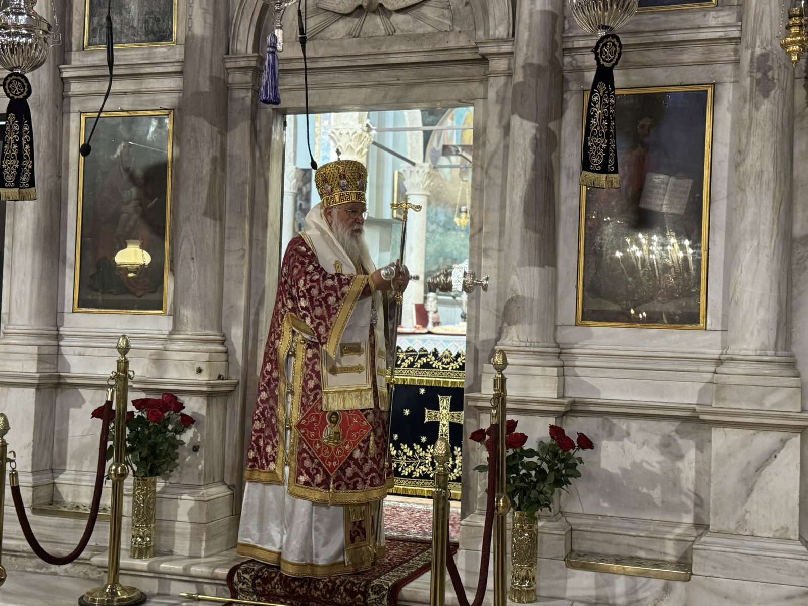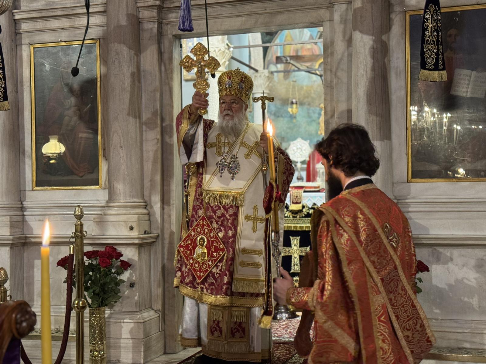 Το Σεβασμιώτατο πλαισίωσαν ο Πανοσιολογιώτατος Ιεροκήρυκας Αρχιμ. Χερουβείμ Βελέντζας, ο Πανοσιολογιώτατος Ιεροκήρυκας Αρχιμ. Δοσίθεος Παπαμήτρος, ο προϊστάμενος του Ιερού Προσκυνήματος, Πρωτοπρεσβύτερος Γεώργιος Βλάχος, καθώς και οι Διάκονοί του, π. Ευσέβιος Πανδής και π. Σπυρίδων Πηγής.