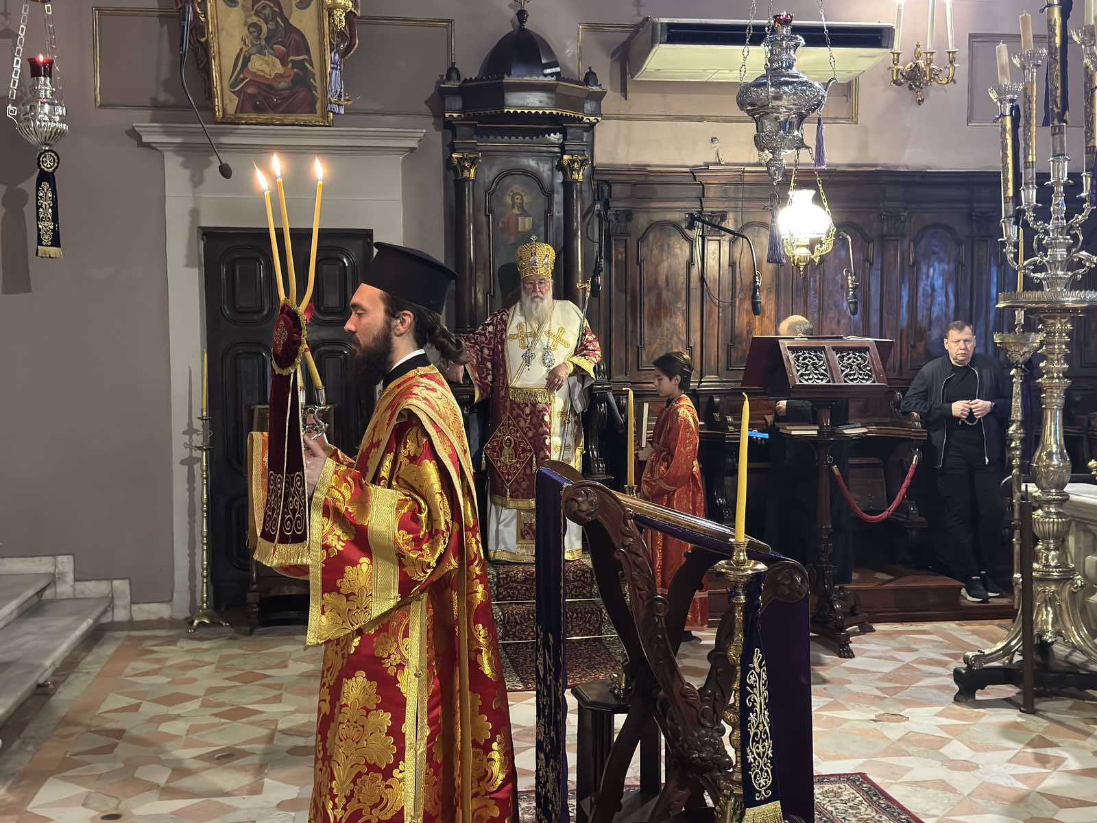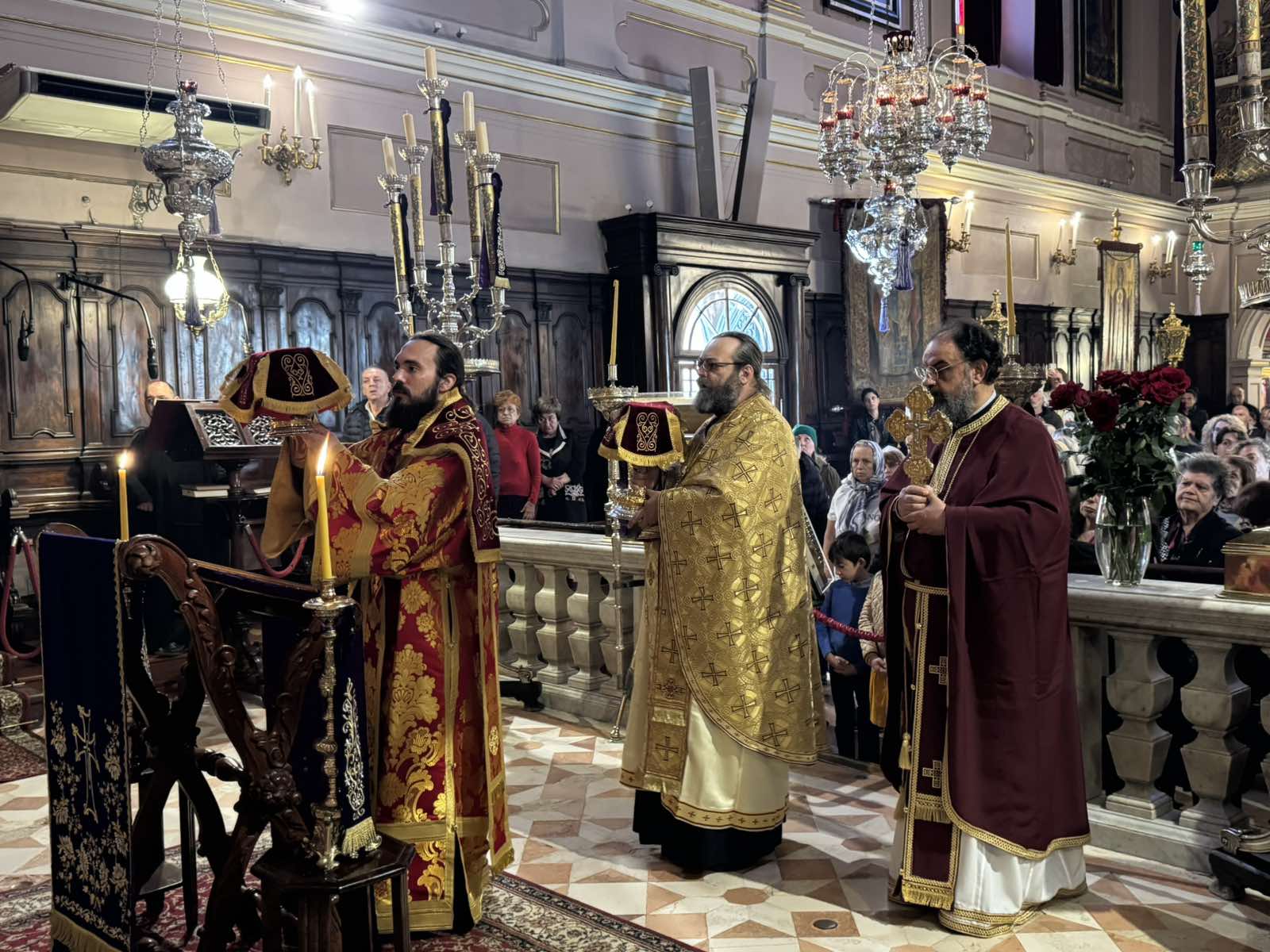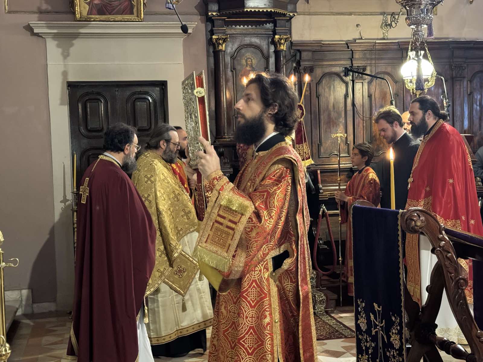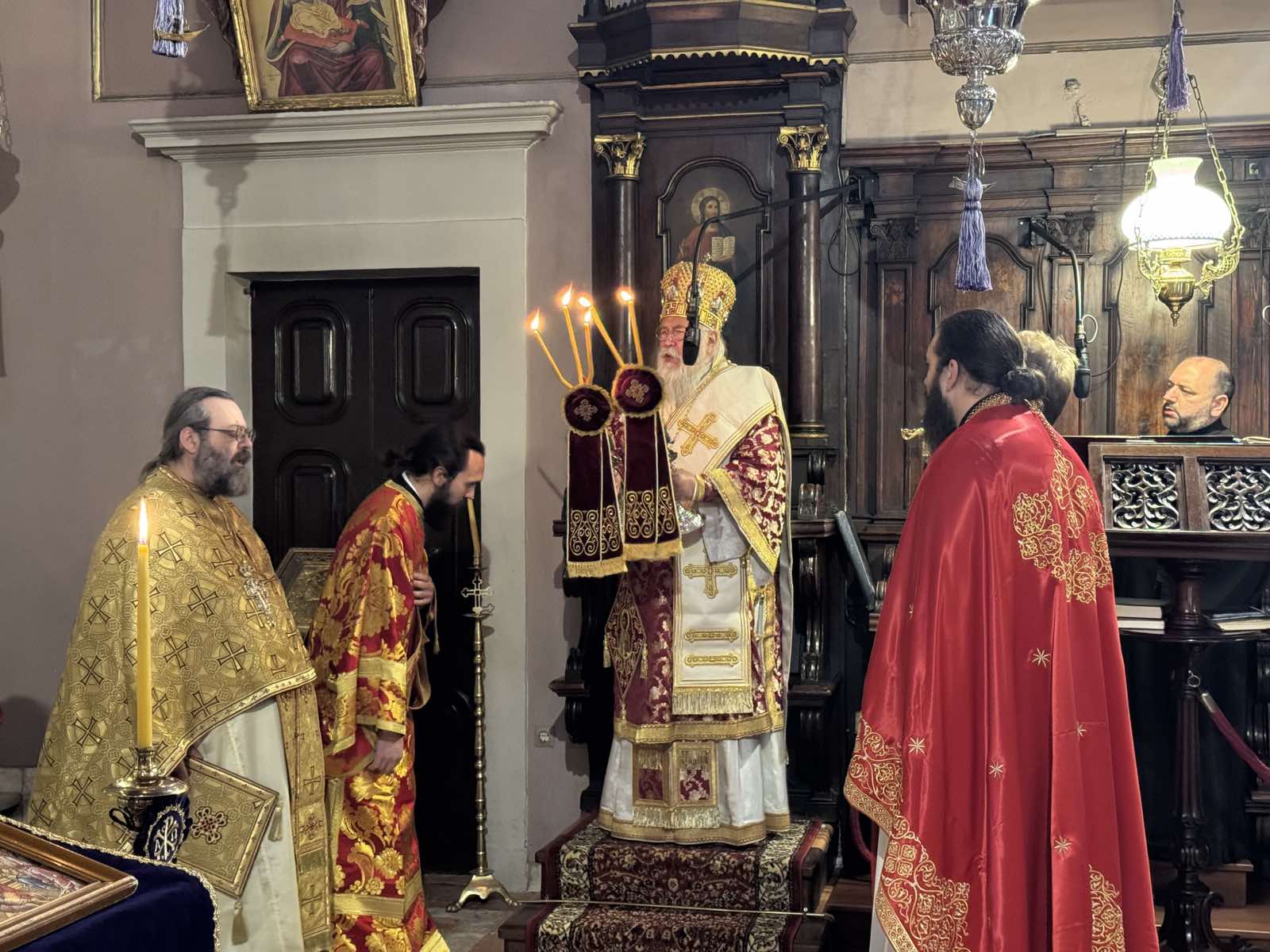 Το Σεβασμιώτατο πλαισίωσαν ο Πανοσιολογιώτατος Ιεροκήρυκας Αρχιμ. Χερουβείμ Βελέντζας, ο Πανοσιολογιώτατος Ιεροκήρυκας Αρχιμ. Δοσίθεος Παπαμήτρος, ο προϊστάμενος του Ιερού Προσκυνήματος, Πρωτοπρεσβύτερος Γεώργιος Βλάχος, καθώς και οι Διάκονοί του, π. Ευσέβιος Πανδής και π. Σπυρίδων Πηγής.