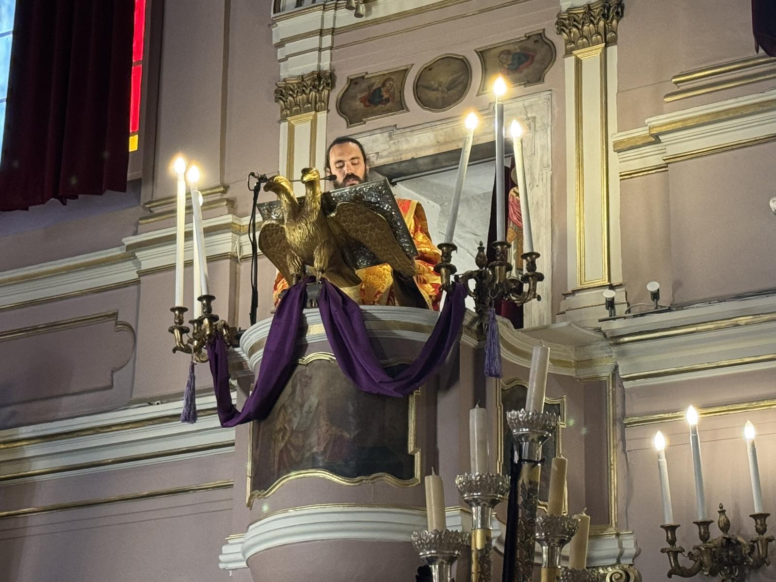 Η ιερά ακολουθία τελέστηκε σε ιδιαίτερα κατανυκτικό κλίμα, υπό τη συμμετοχή πλήθους ευλαβών προσκυνητών και πιστών, οι οποίοι προσήλθαν για να βιώσουν τα γεγονότα της Μεγάλης Πέμπτης και να μεταλάβουν των Αχράντων Μυστηρίων. Την εν λόγω ημέρα, η Εκκλησία μας προβάλλει τον Ιερό Νιπτήρα, ως πράξη ταπείνωσης και διακονίας του Χριστού, το Μυστικό Δείπνο και την παράδοση του Μυστηρίου της Θείας Ευχαριστίας από τον Χριστό στους μαθητές Του, την υπερφυά προσευχή του Κυρίου ημών Ιησού Χριστού στη Γεθσημανή αλλά και την προδοσία του Ιούδα ως αρχής της πορείας προς το Πάθος.